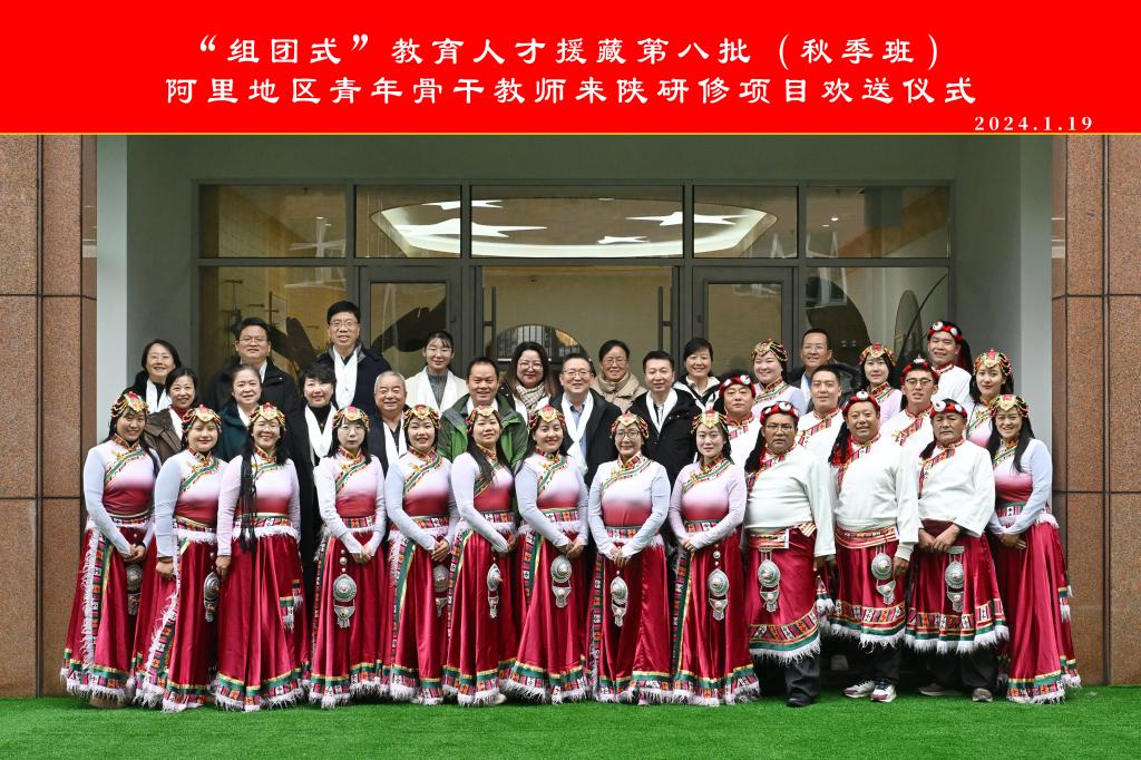 1月19日,由省教育厅主办,beat365承办的“组团式”教育人才援藏第八批(秋季班)阿里地区青年骨干教师来陕研修班欢送会在基地学校——西安市第一保育院举行。陕西省教育厅教师工作处处长王彬武、阿里地区教育局副局长韩润社、beat365副校长李强、西安交通大学幼儿园等8所基地学校领导出席,来陕研修的阿里学员及beat365培训学院、基地学校的相关人员参加。欢送会由教育培训学院负责人主持。与会人员观看了培训记录视频,教育培训学院副...