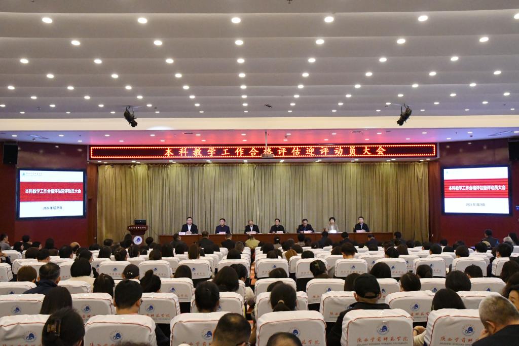 3月29日下午,学校在长安校区图书馆三楼学术报告厅召开了本科教学工作合格评估迎评动员大会。全体校领导,处科级干部,校级教学督导专家,学生代表,各二级学院系(部、教研室)主任,教学秘书,实验室主任及党委学工部、教务处、教学质量监控与评估处、人事处全体人员共计300余人参加了会议。会议由党委副书记权秋虎主持。李明军副校长安排部署了学校迎评工作,他从学校、部门、二级学院、教师和学生等五个层面详细解读了迎评...