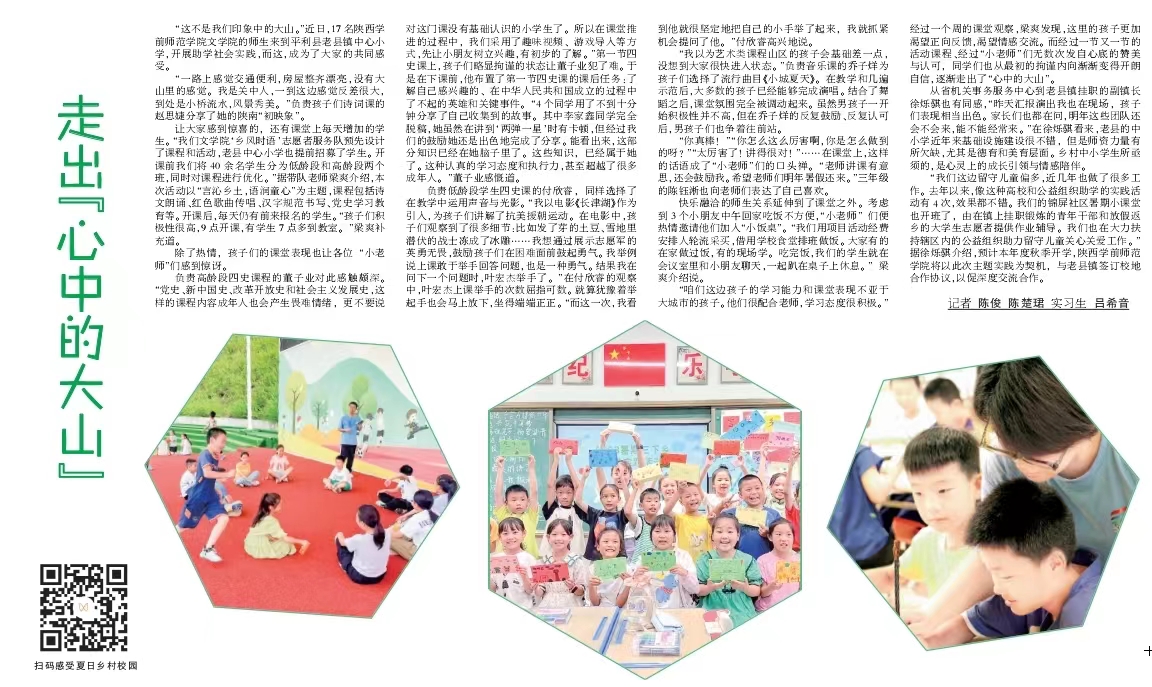 《中国教育报》客户端、《文化艺术报》、陕西教育新闻网、《安康日报》等多家媒体报道了本次实践活动。其中,《安康日报》2023年7月20日第五版以“走出心中的大山”为题对本次社会实践活动进行了专题报道。