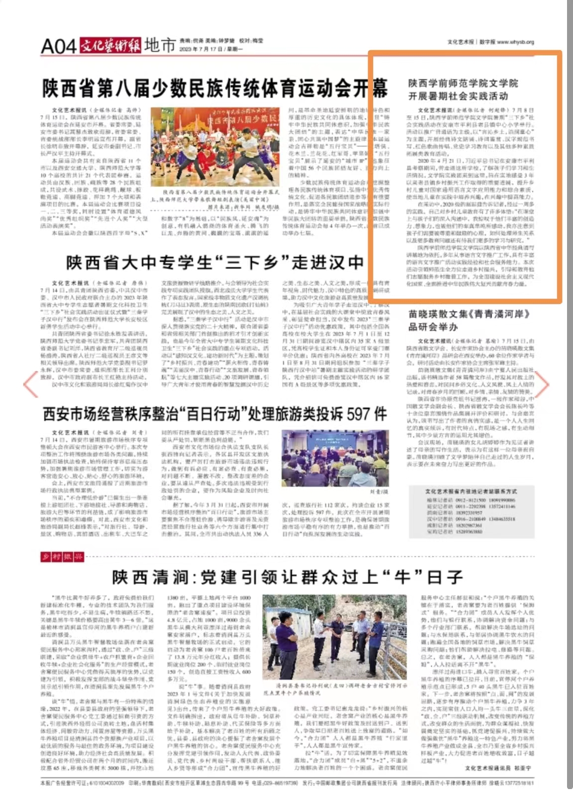 《文化艺术报》-beat365正版唯一官网文学院开展暑期社会实践活动 http://www.whysb.org/whysb/20230717/mhtml/page_04_content_20230717005004.htm#page04