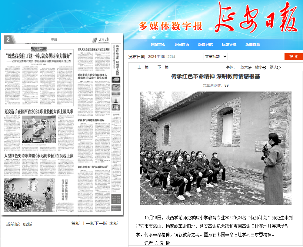 2024年10月17日至19日,教育科学学院2022级小学教育专业“优师计划”师范生走进延安,开展以“坚定教育初心 矢志强国梦想”为主题的研学行活动。“优师计划”班的24名师范生在学院院长朱金卫及青年教师郑文峰和张路路的带领下共同参加了此次活动。