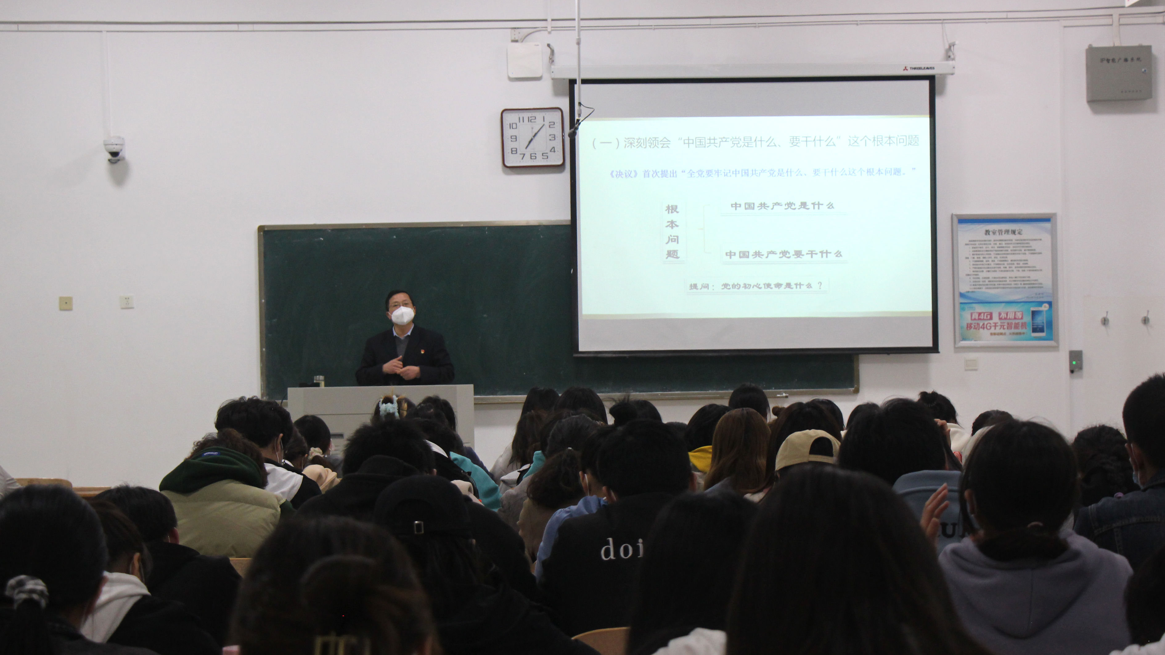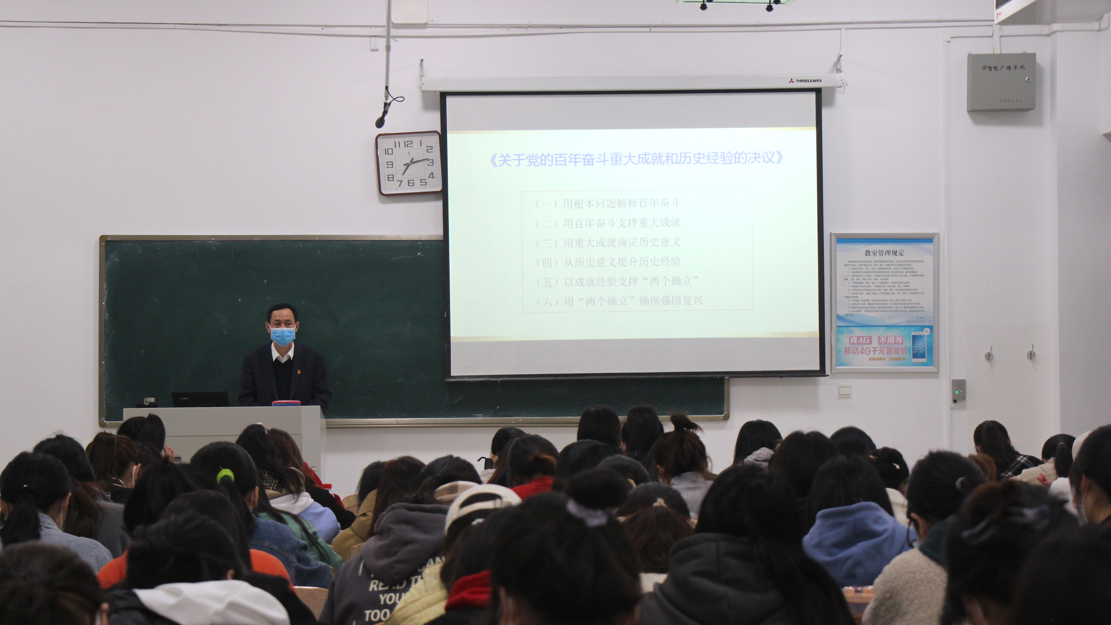 课堂上,校领导带领同学们一起回望了党的百年奋斗史,认真学习了十九届六中全会审议通过的《中共中央关于党的百年奋斗重大成就和历史经验的决议》,通过学习,同学们深刻认识到,过去一百年,党向人民、向历史交出了一份优异的答卷,书写了中华民族几千年历史上最恢宏的史诗。