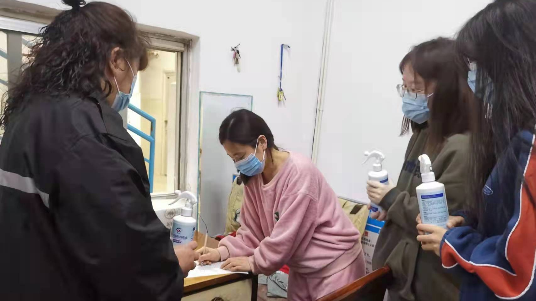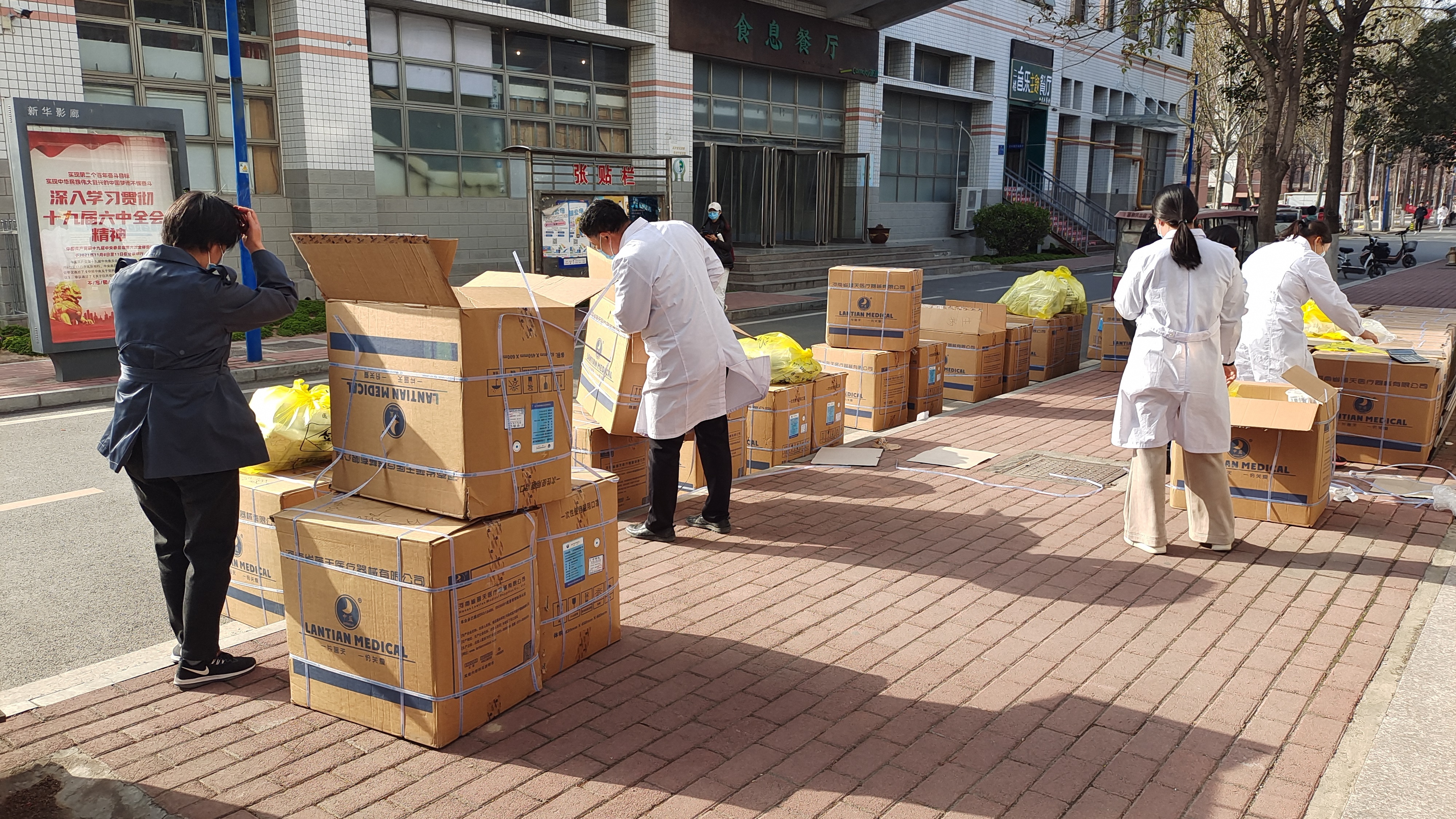 3月28日,后勤服务中心校医院受校党委委托,为在校生发放防疫物资,共计发放20余万只口罩,并为每一个宿舍都配备了消毒液,共计发放5100瓶。