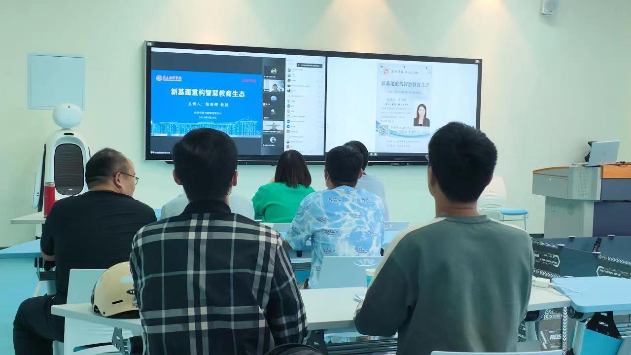 9月23日下午,由教学评价与教师发展中心主办、信息技术学院承办的“笃信论坛”通过腾讯会议线上直播的形式举行。信息技术学院陈丽娜教授作了题为《新基建重构智慧教育生态》的主题研讨,近200位来自省内外的教师参与了此次活动。信息技术学院副院长刘佳主持此次论坛。