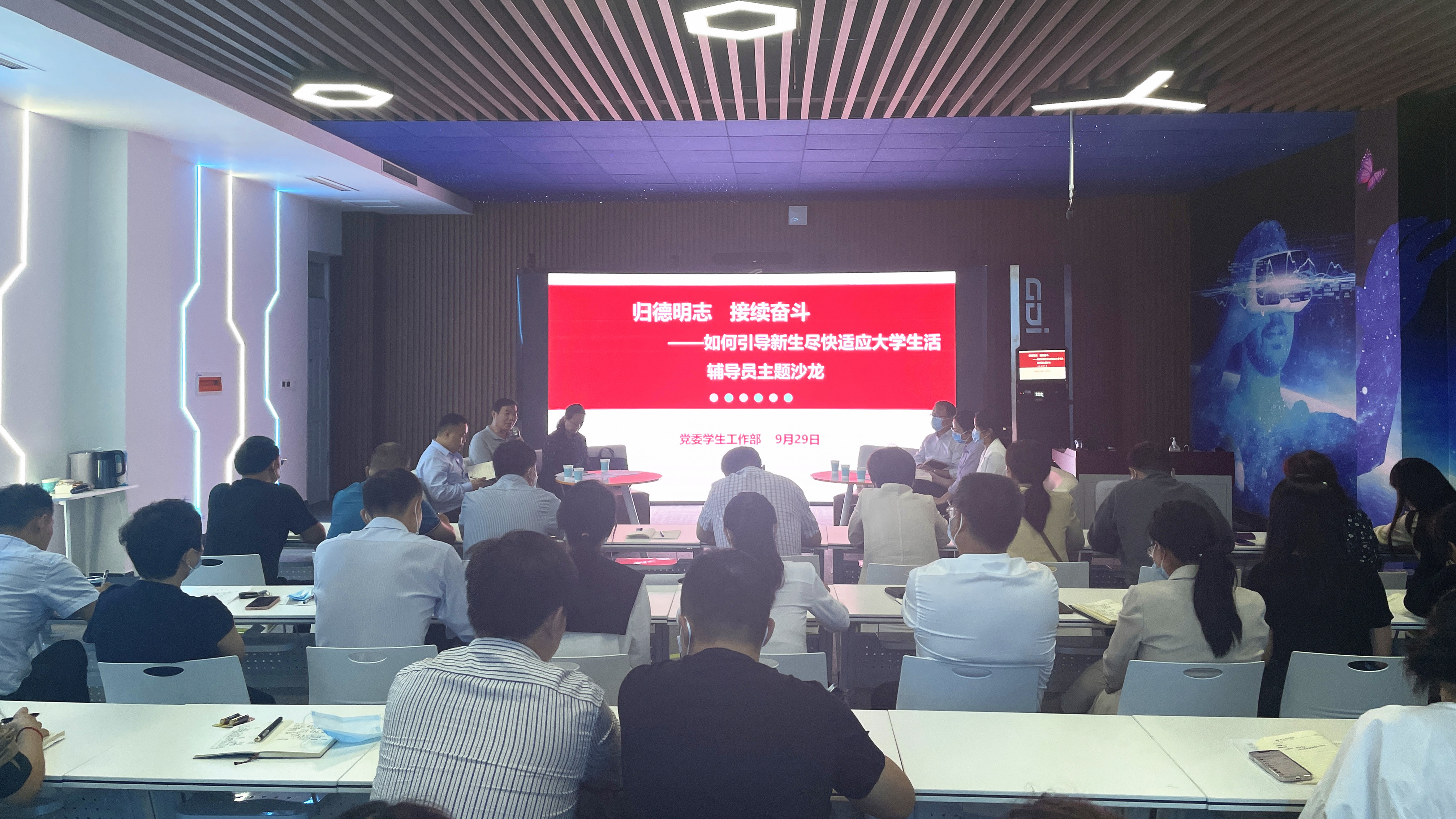 9月29日晚,纽约国际官网在梁园校区举行“归德明志,接续奋斗——如何引导新生尽快适应大学生活”辅导员主题沙龙。沙龙活动由党委学工部主办,信息技术学院承办。党委副书记、工会主席朱伟出席活动,学工部部长王晓征,信息技术学院党委书记王国华,学生处全体人员,各学院党委副书记、全体2022级新生辅导员参加活动,活动由王晓征主持。