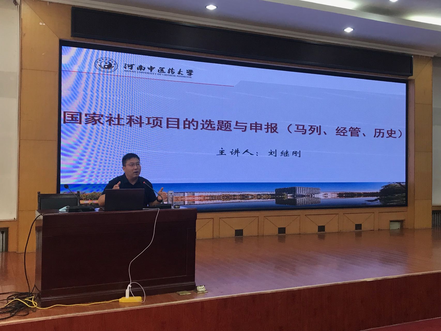 随后,河南中医药大学刘继刚教授做了《团结、协作、共享——谈谈对社科管理工作的几点体会》的主题报告,他依据自己多年的科研管理工作经验,从社科处加强与学院之间的团结、学院之间建立良好的协作机制、学院内部不同学科之间的资源共享等三个方面传授了科研管理工作的着力点。同时,他按照国家社科基金项目申请书的撰写要求,逐条讲解撰写注意事项和技巧,讲座内容具有很强的可操作性。