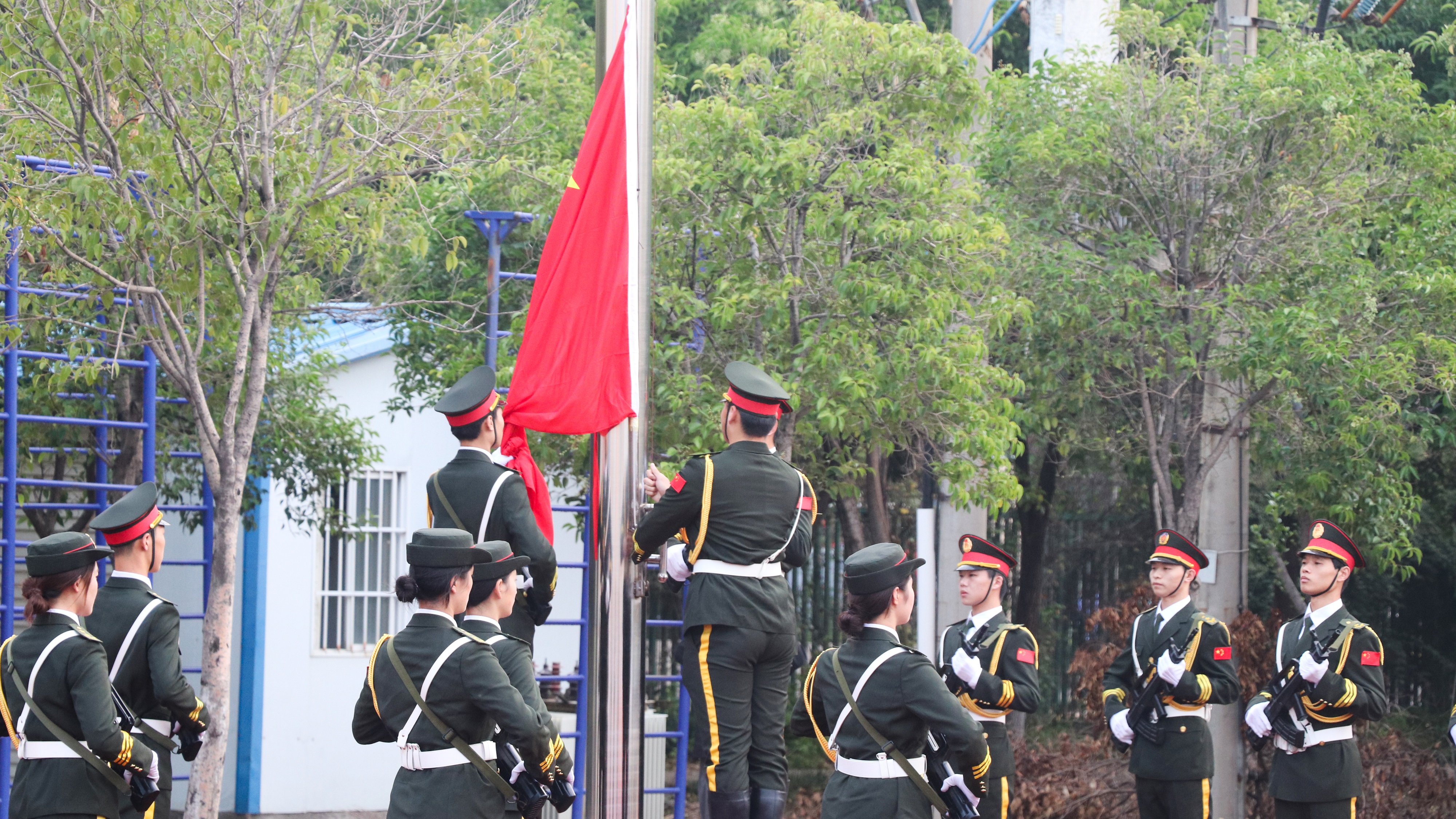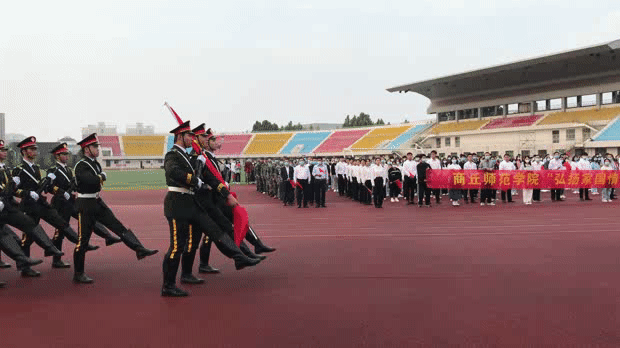 国旗护卫队迈着铿锵有力的步伐护送国旗来到升旗台前,伴随着激昂雄壮的《义勇军进行曲》,全体师生行注目礼,升国旗、唱国歌。党委学工部部长王晓征分享国旗下的感悟,寄语大学生时刻和祖国血脉相连,践行“强国有我,请党放心”的誓言,涵养“海纳百川,胸怀天下”的气度,争做“各美其美,美美与共”的典范。引导大学生把家国情怀融进血液、化为动力,热爱商师、爱校如家,让多彩青春在奋斗中闪光。