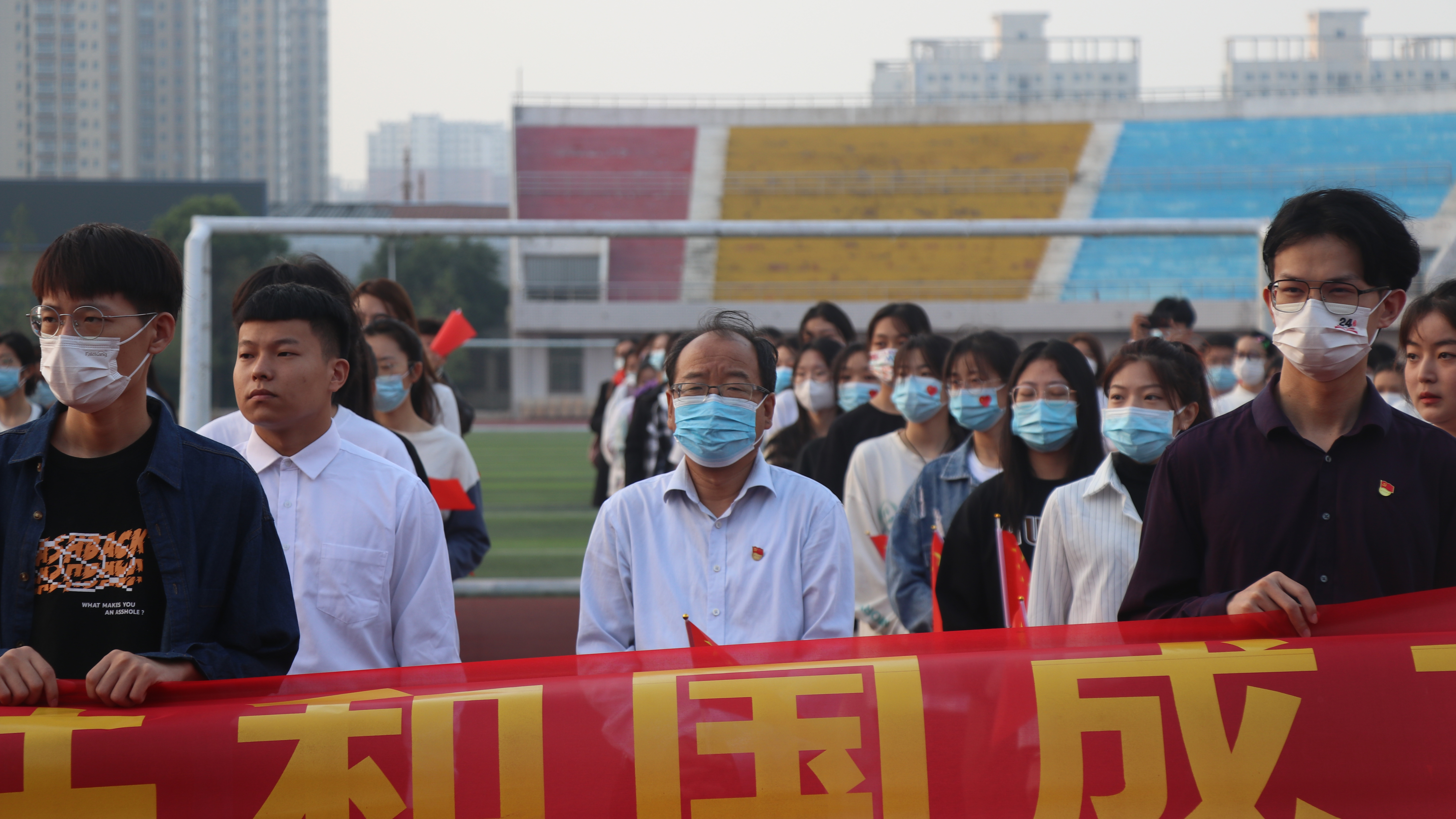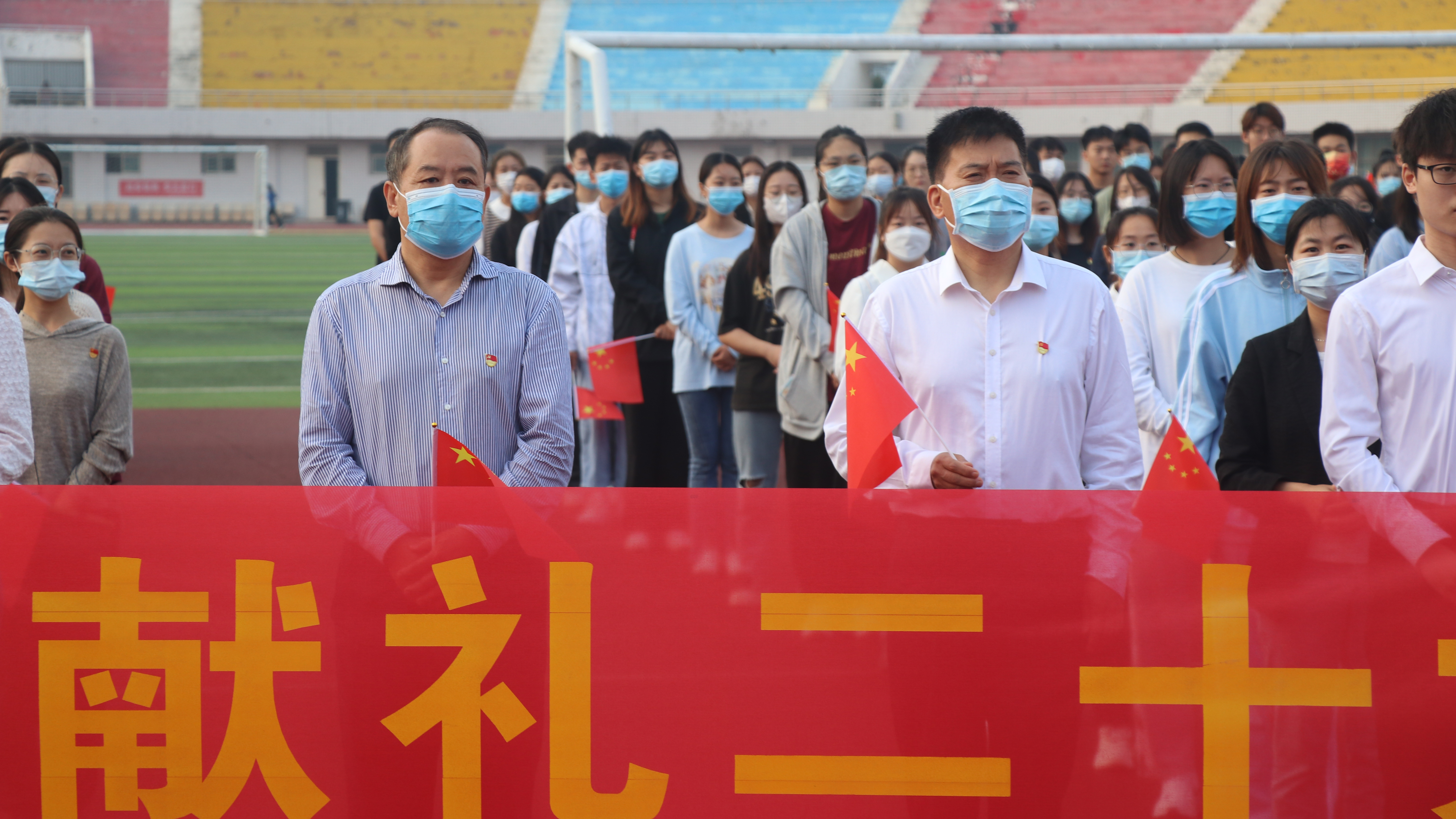 李杰、王云一表演的诗朗诵《礼赞》,歌颂心怀“国之大者”,引导个人命运同国家前途和民族命运紧密相连;郑贺文等同学带来的歌曲《我和我的祖国》唱出了对祖国的无限深情;和祖国同一天生日的张佳媛同学怀着激动的心情诉说歌曲《我爱你中国》;全体师生挥舞着手中鲜艳的国旗,共同唱响《歌唱祖国》。