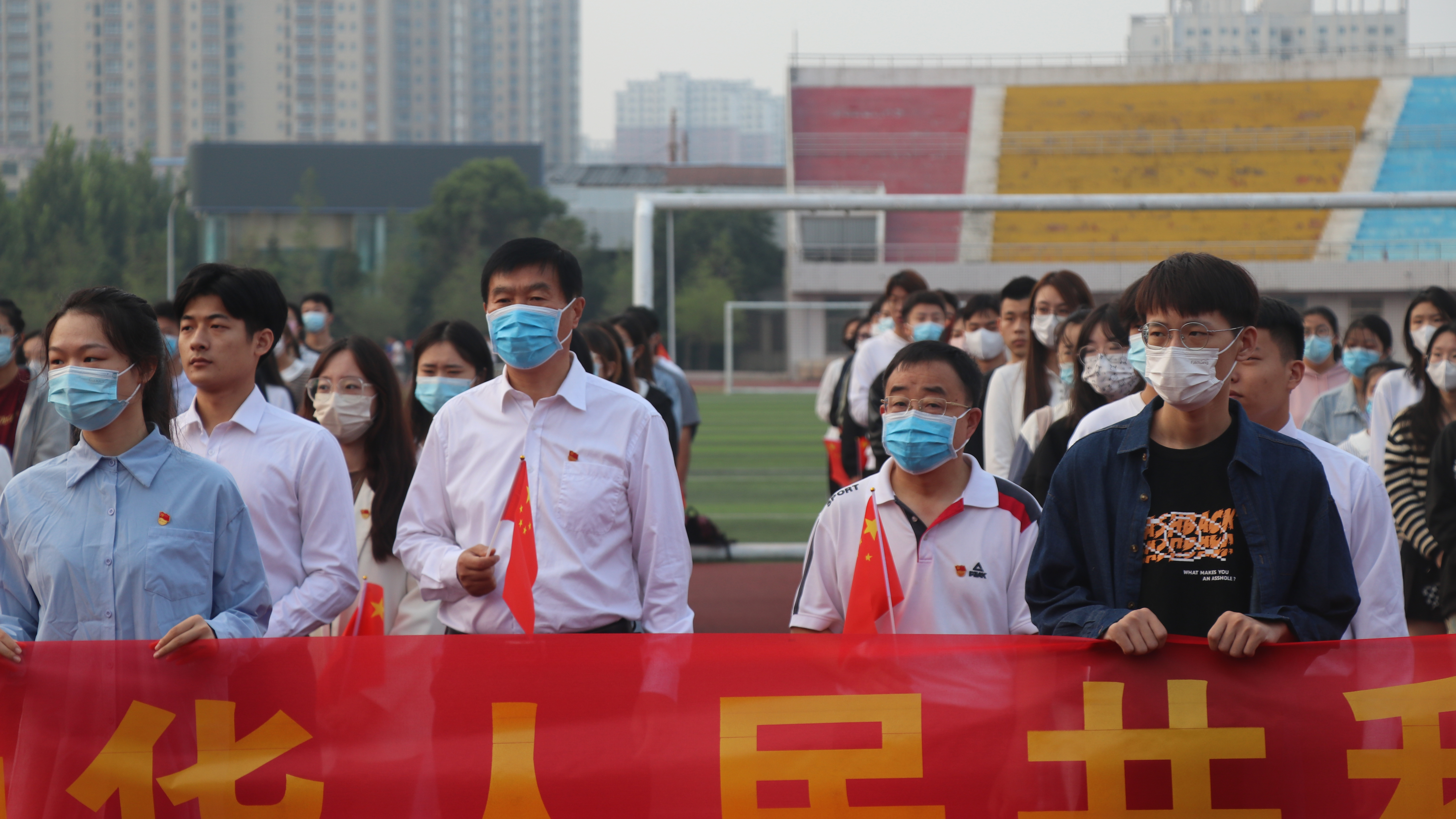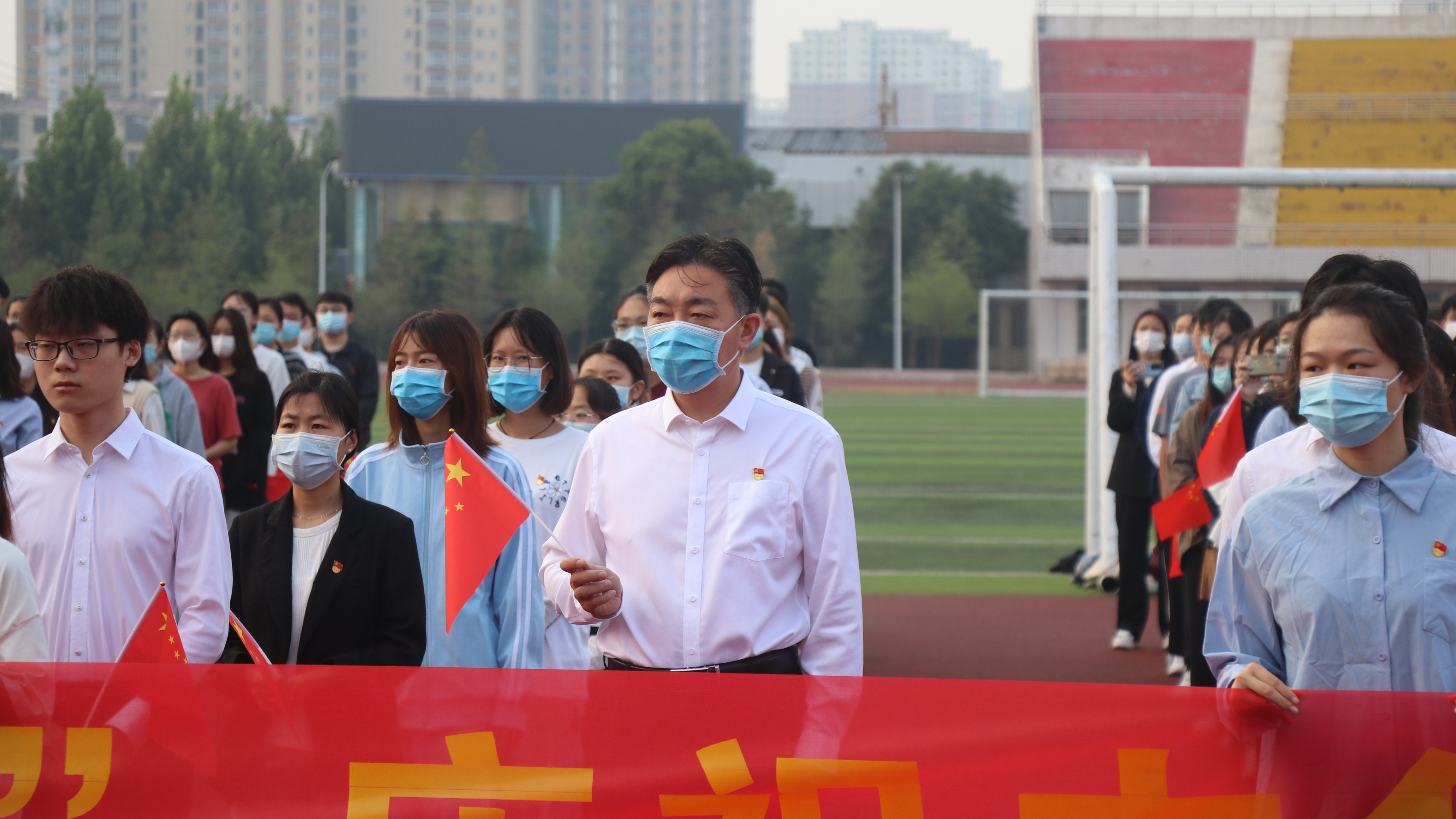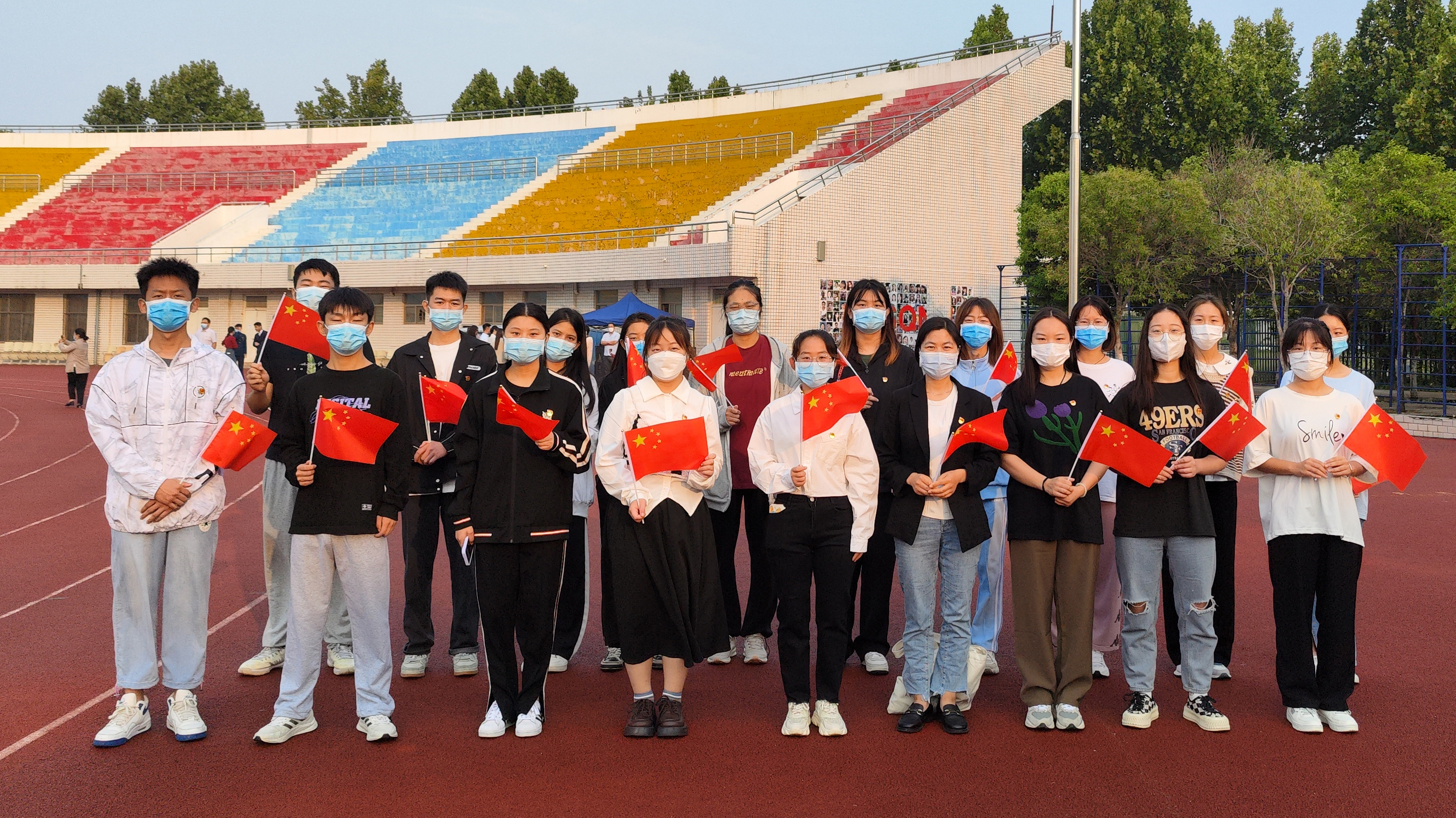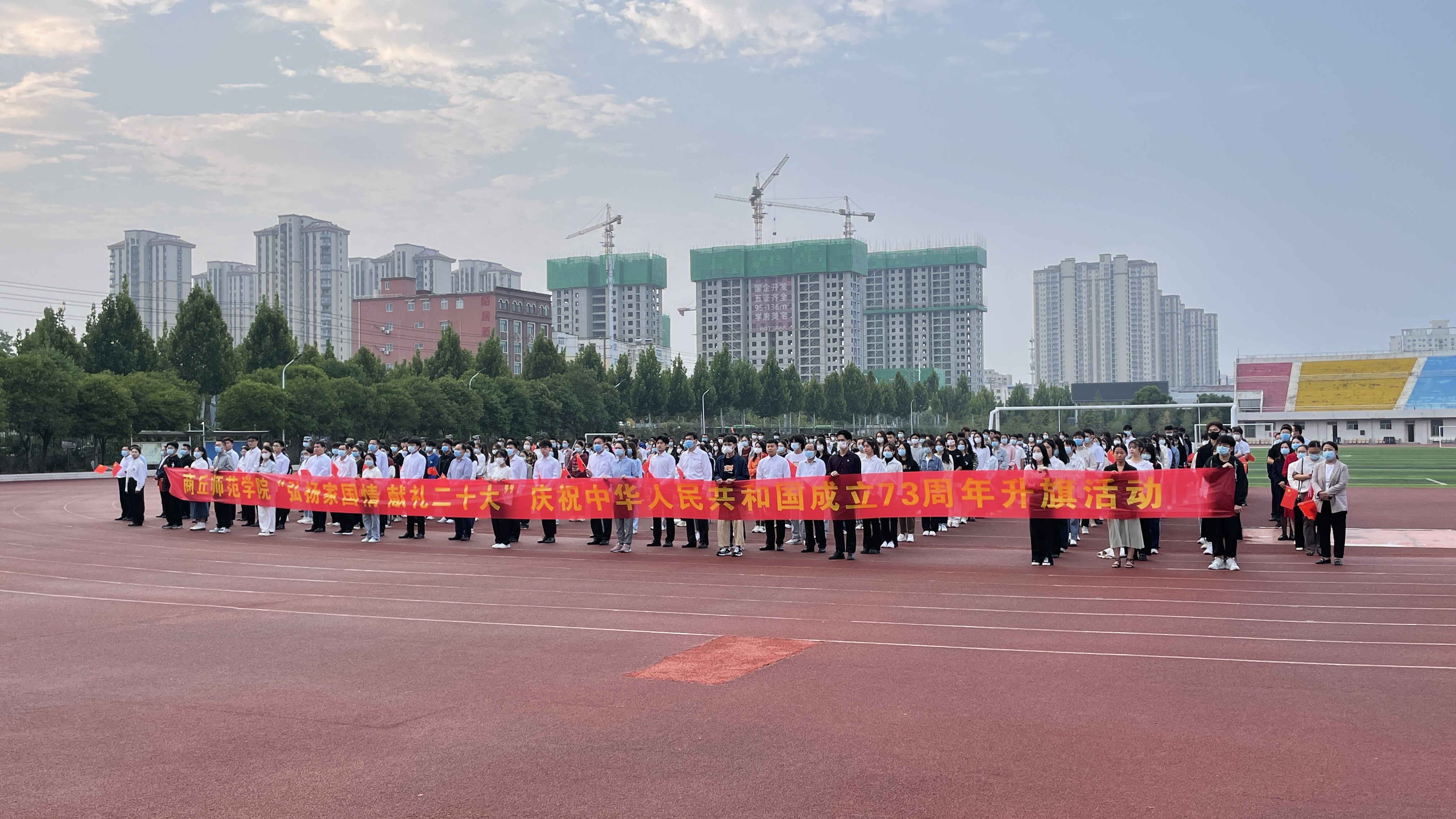 10月1日早上,纽约国际官网在梁园校区体育场举行“弘扬家国情 献礼二十大”升旗活动,庆祝中华人民共和国成立73周年。校领导张志坚、朱伟、吴金山、徐茂田、辛作义、李永春、郭文佳、张箭出席活动,学校各职能部门、师生代表参加活动。活动由校团委书记刘培培主持。