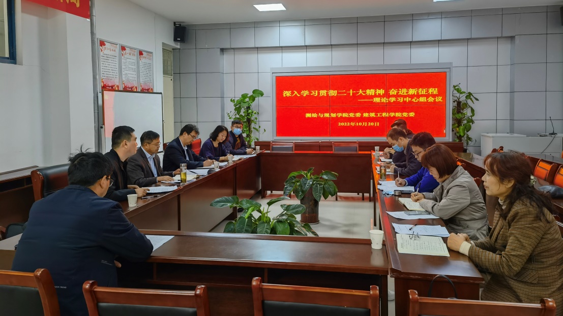 副校长程功鹏参加了测绘与规划学院、建筑工程学院党委理论学习中心组党的二十大精神专题学习会,就学习贯彻党的二十大精神提出了明确要求。马克思主义学院党委召开理论学习中心组会议,专题学习研讨党的二十大报告精神,谋划马克思主义学院工作,马克思主义学院党委书记龚志宏从十五个方面领学了党的二十大报告的主要内容,梳理了党的二十大报告的结构体系。国际交流处召开党的二十大报告专题学习会,闫永峰处长领学了党的二十大报告。教务处召开党的二十大报告专题学习会,韩桂玲处长领学了党的二十大报告。