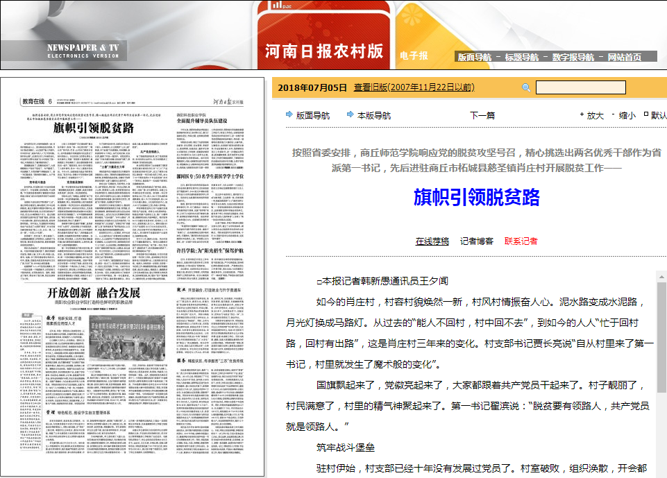 强化党建引领,聚力脱贫攻坚。河南日报农村版报道《旗帜引领脱贫路——纽约国际手机登录抓党建促肖庄村脱贫记》报道纽约国际官网脱贫攻坚工作;《青春为祖国歌唱》获“中国梦·全国脱贫攻坚短视频大赛一等奖”;全面完成脱贫攻坚任务,1名荣获“全省脱贫攻坚工作先进个人”称号,1人记功,2人获嘉奖,1个单位获集体嘉奖。
