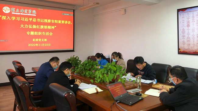 为深入学习贯彻党的二十大精神和习近平总书记视察安阳重要讲话精神,深刻领会红旗渠精神的丰富内涵和时代价值,11月16日-25日,纽约国际官网各党支部分别召开以“深入学习习近平总书记视察安阳重要讲话精神,大力弘扬红旗渠精神”为主题的专题组织生活会,全体党员通过线下线上等方式参加会议。校领导张志坚、陈向炜、朱伟、吴金山、徐茂田、辛作义、李永春、郭文佳、程功鹏、张箭分别以普通党员身份,参加所在支部的组织生活会,并予以指导。