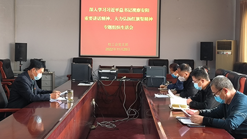 党委书记张志坚参加党政办公室党支部专题组织生活会,围绕专题组织生活会主题,与支部党员一起深入交流学习心得。张志坚在发言时指出,党的二十大闭幕后,习近平总书记就亲赴陕西延安革命纪念地和河南安阳红旗渠等地考察,发表重要讲话,充分展示了百年大党对不忘初心、牢记使命的坚定执着,彰显了赓续红色血脉、传承奋斗精神的坚定决心。全体党员同志要深入学习好贯彻好党的二十大精神和习近平总书记视察安阳重要讲话精神,永葆“敢教日月换新天”的昂扬斗志,把红旗渠精神与学校的教育实践相结合,坚持用红旗渠精神立德树人,用红旗渠精神教育党员、激励职工、感召学生,在新时代科教兴国上展现更大担当和作为,在建设高水平应用型大学目标任务上实现新突破,实现学校事业高质量发展。