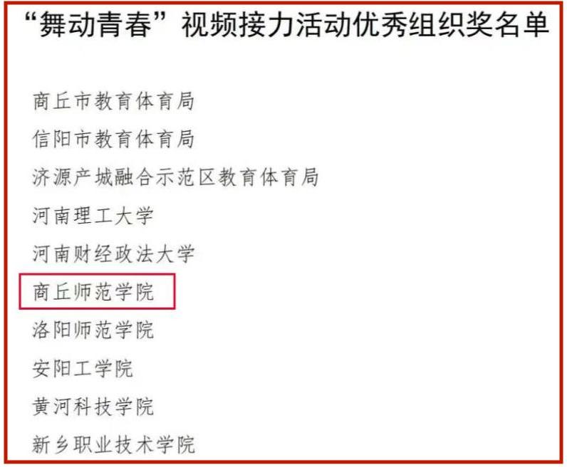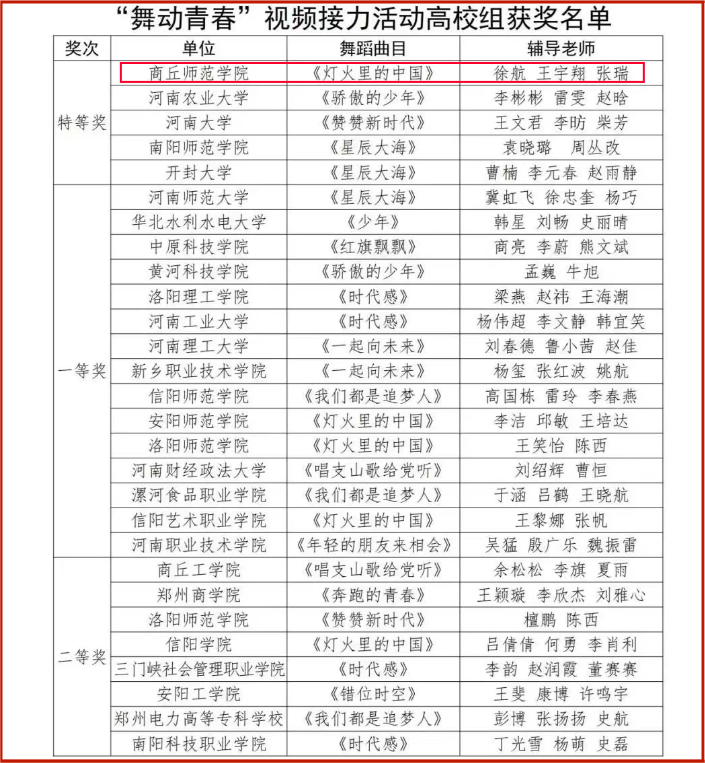 近日,河南省委教育工委、河南省教育厅下发《中共河南省委教育工委办公室河南省教育厅办公室关于公布“舞动青春”视频接力活动获奖结果的通知》,纽约国际官网报送作品《灯火里的中国》获评“舞动青春”视频接力活动高校组特等奖,纽约国际官网荣获“舞动青春”视频接力活动优秀组织奖。