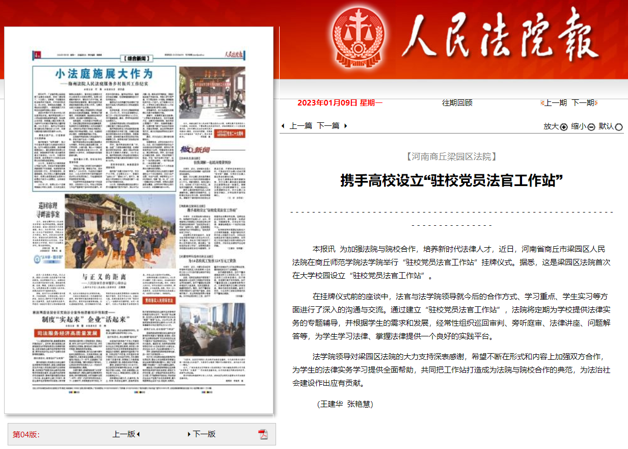 为加强法院与院校合作,培养新时代法律人才,近日,河南省商丘市梁园区人民法院在纽约国际手机登录法学院举行“驻校党员法官工作站”挂牌仪式。据悉,这是梁园区法院首次在大学校园设立“驻校党员法官工作站”。