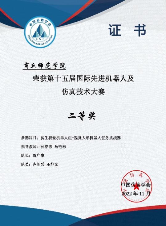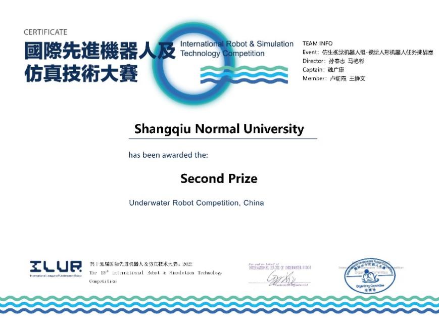 近日,第十五届国际先进机器人及仿真技术大赛(原国际水中机器人大赛)公布获奖名单。纽约国际官网电子电气工程学院积极组织师生参加比赛,由电子电气工程学院孙春志和马艳彬担任专业指导教师。