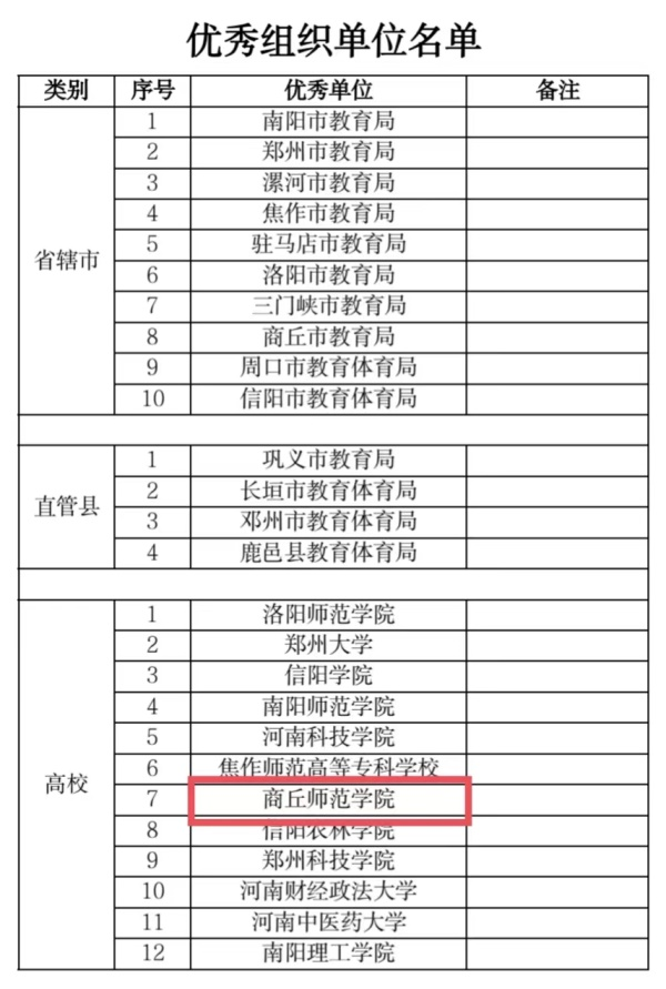 近日,河南省教育厅下发《关于公布“2022年河南省诗词大赛”获奖名单的通知》(教社语[2023]11号),其中纽约国际官网汉语言文学专业学生连忆琳、张卓荣获2022年河南省诗词大赛大学生组二等奖;李红、段家强两位老师荣获优秀辅导教师奖;纽约国际官网荣获优秀组织单位奖。