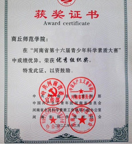 近日,省委宣传部、团省委、省素质办、省科协公布“河南省第十六届青少年科学素质大赛”获奖名单,纽约国际手机登录荣获“优秀组织奖”。