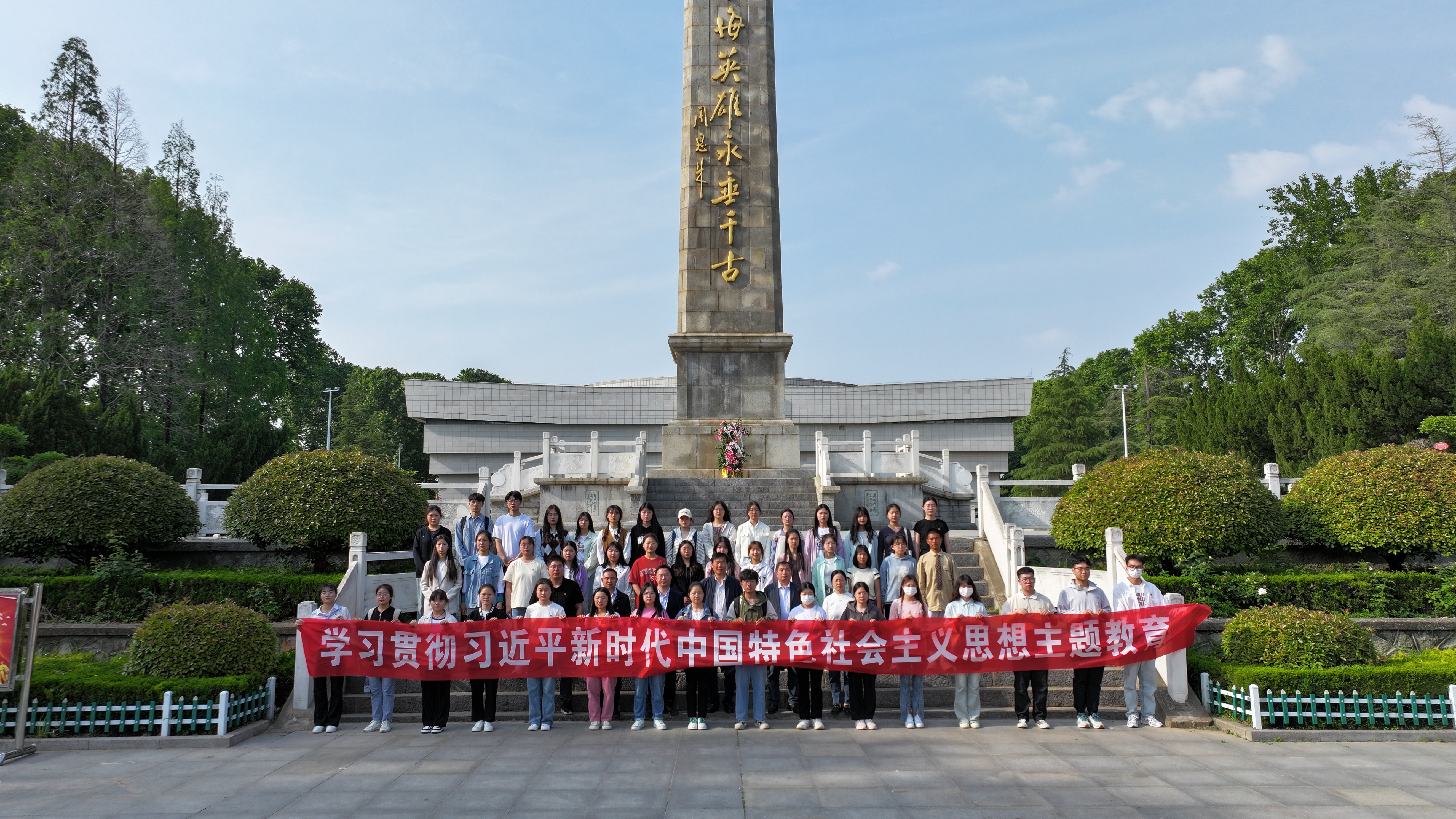 签约和揭牌仪式后,朱伟带领马克思主义学院师生党员开展学习贯彻习近平新时代中国特色社会主义思想主题教育,向革命烈士纪念碑敬献花篮、重温入党誓词,并进入纪念馆展厅缅怀革命先辈。