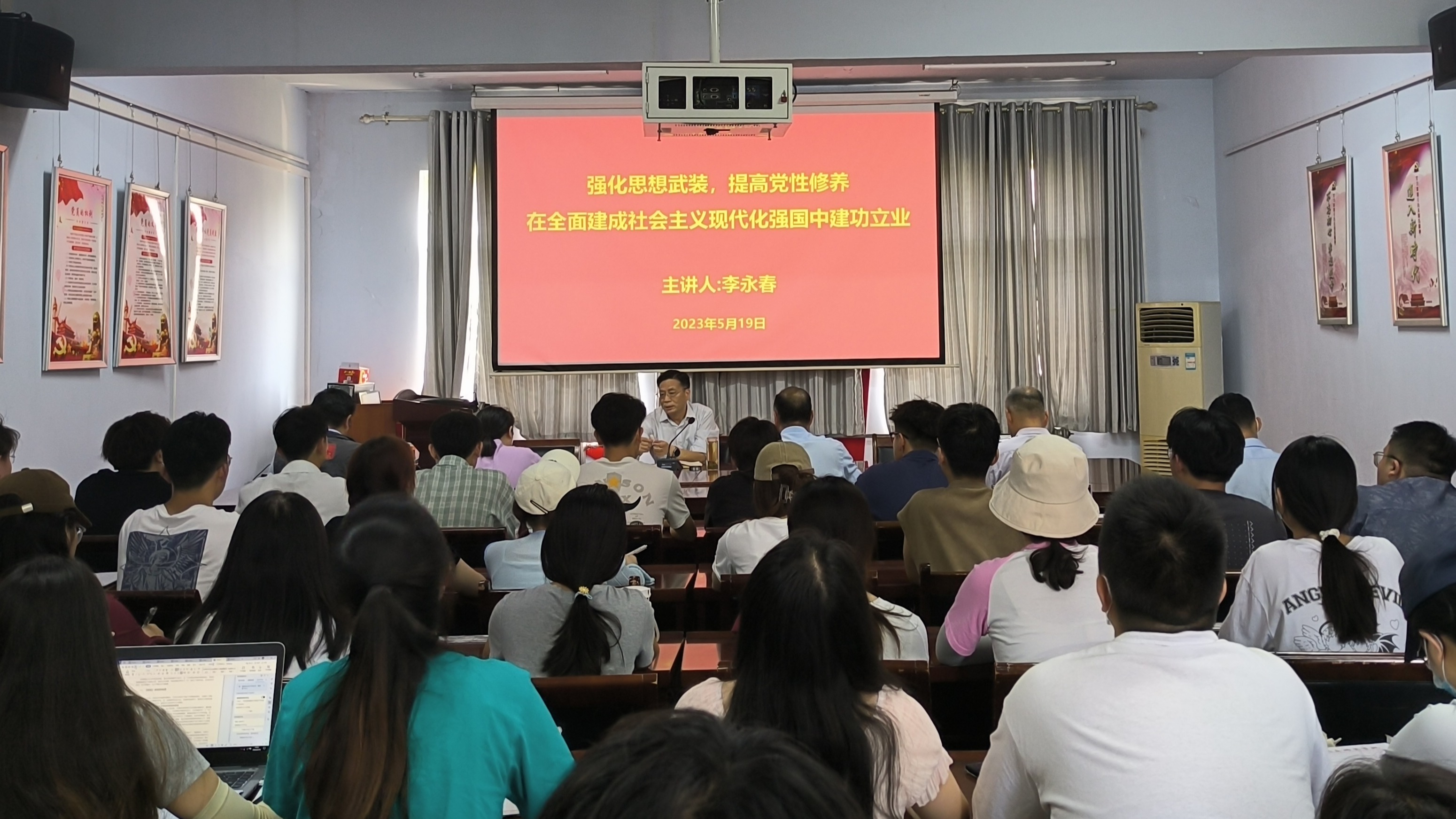 校纪委书记、监察专员李永春分以《深化理论学习,提升思想境界,做师生满意的服务者》为题,从“以主题教育为契机,提升思想境界;坚持业务理论学习,提升事业境界;坚持经常警醒反省,提升修养境界;时刻防‘围猎’,提升廉洁境界;树立良好家风,提升人生境界”五个方面为后勤服务中心教职工讲授党课。以《强化思想武装,提高党性修养,在全面建成社会主义现代化强国中建功立业》为题为艺术设计学院、美术学院学生党员讲授党课,从“强化思想武装,做到明大德、立大志;强化自身修养,做到守公德、重品行;强化独善其身,做到严私德、知敬畏;强化奋斗精神,做到创政德、担大任”四个方面,教育引导与会党员厚植家国情怀、涵养党性修养。