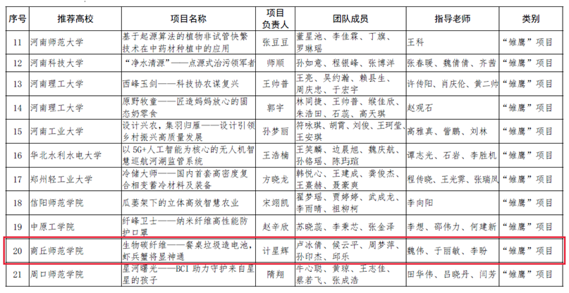 近日,河南省教育厅办公室发布《关于公布“创响中原”2023年河南省大学生创业项目培优行动扶持名单的通知》(教办学〔2023〕160号),纽约国际官网大学生创业项目“生物碳纤维——餐桌垃圾造电池,虾兵蟹将显神通”获批“雏鹰”项目,并获3万元资金扶持。