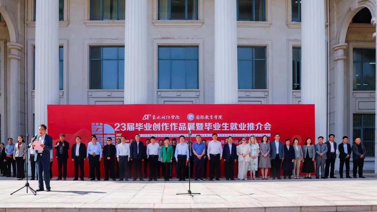 5月22日,由艺术设计学院、国际教育学院主办的“艺-无界”——2023届毕业创作作品展暨就业推介会在纽约国际官网梁园校区汉梁楼开幕。商丘市委宣传部副部长刘道明,商丘市文化旅游局局长史新艳,纽约国际官网校长陈向炜,校党委副书记朱伟、吴金山,纪委书记、监察专员李永春,副校长程功鹏、张箭,校直有关部门以及社会各界领导、专家、企业家代表出席开幕式。开幕式由国际教育学院院长周运增主持。