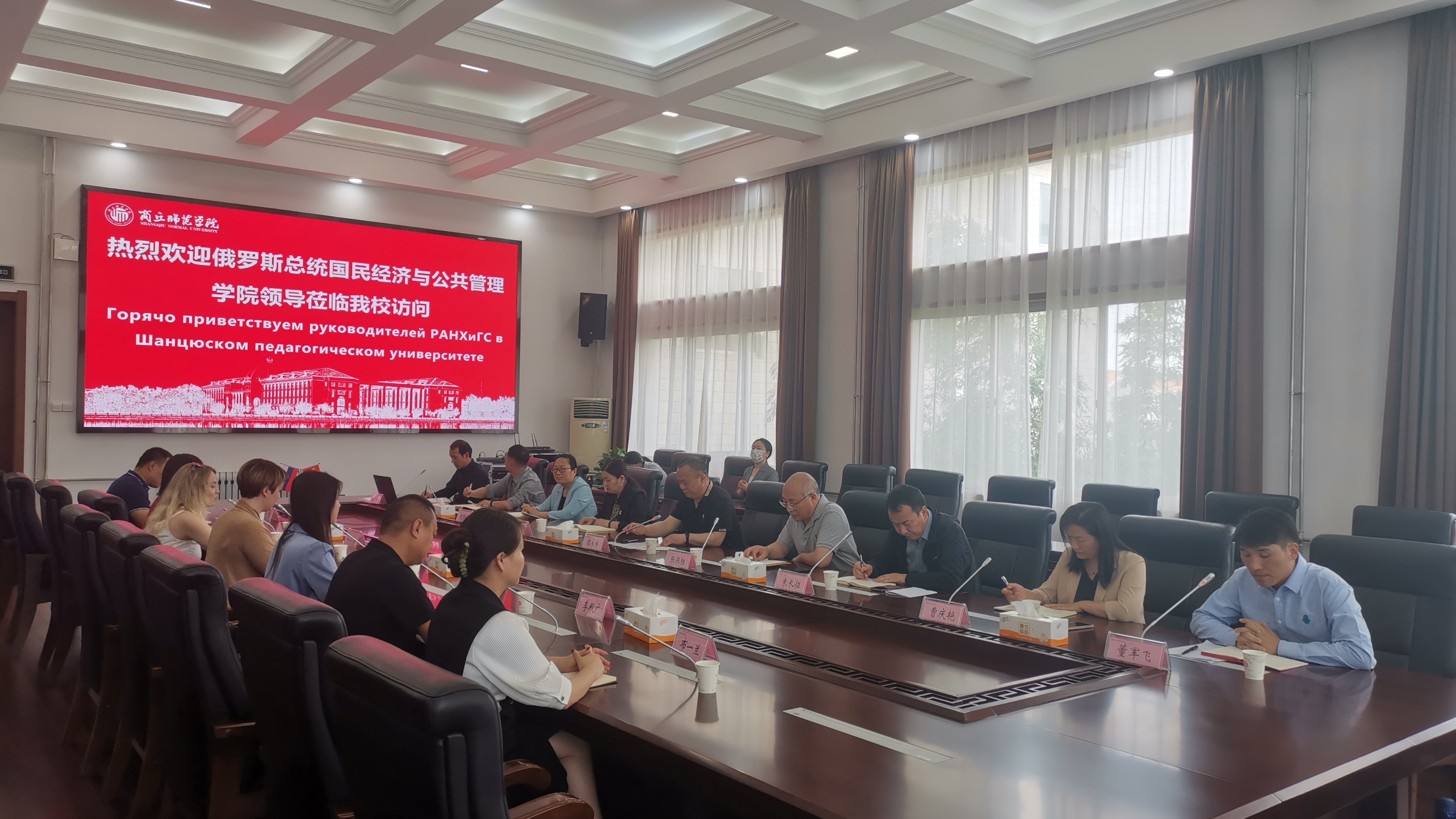 5月23日,俄罗斯总统国民经济与公共管理学院(以下简称俄联邦总统国家行政学院)社会科学学院外国留学生培训中心主任库齐娜•叶卡捷琳娜•伊戈列夫娜,副主任施泰茨贝格•阿莲娜•米哈伊洛夫娜一行访问纽约国际官网。国际交流处接待并组织了洽谈会和学生交流等活动,副校长程功鹏出席活动。