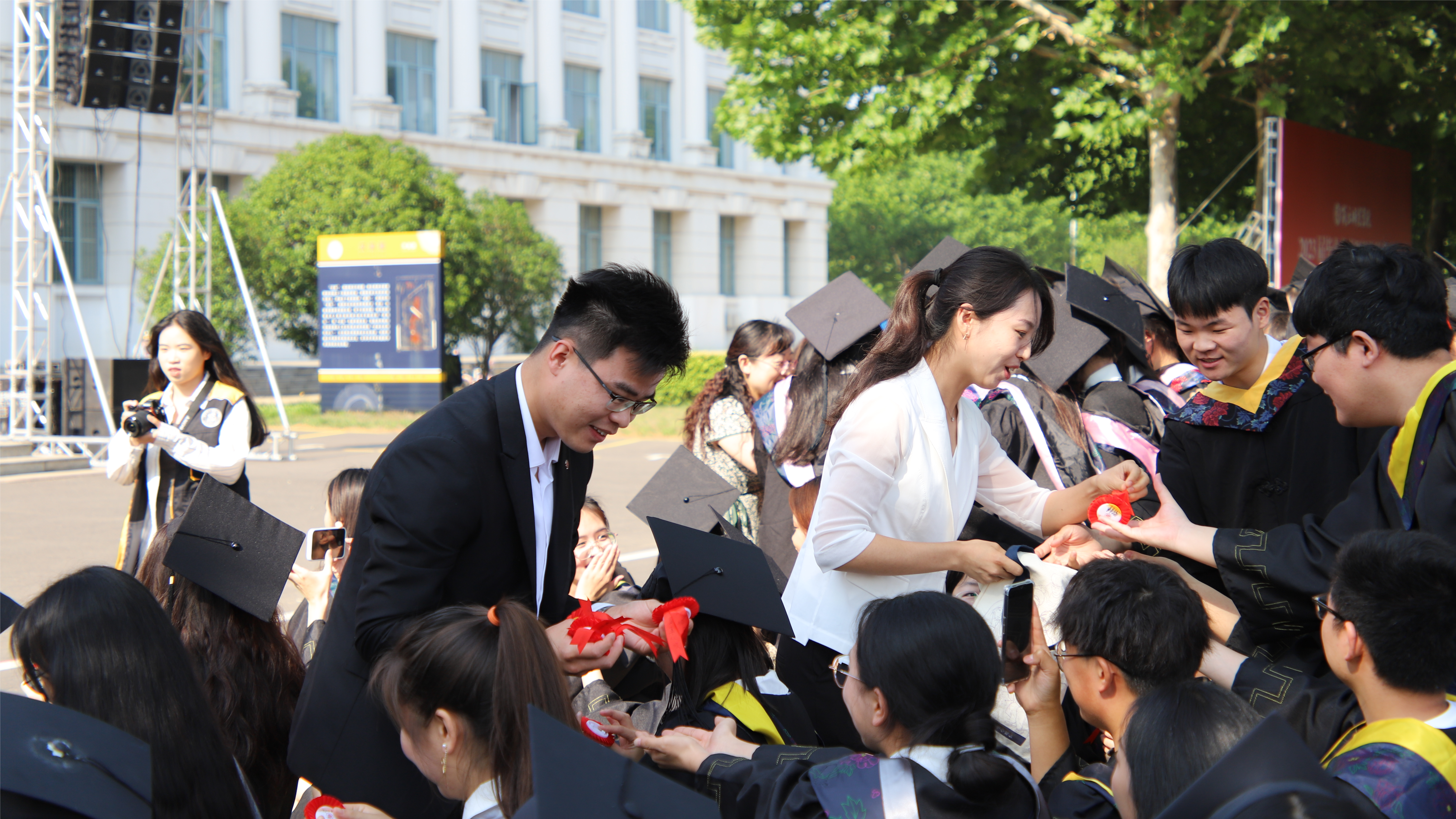 副校长张箭为毕业生拨穗正冠、颁发学位证书