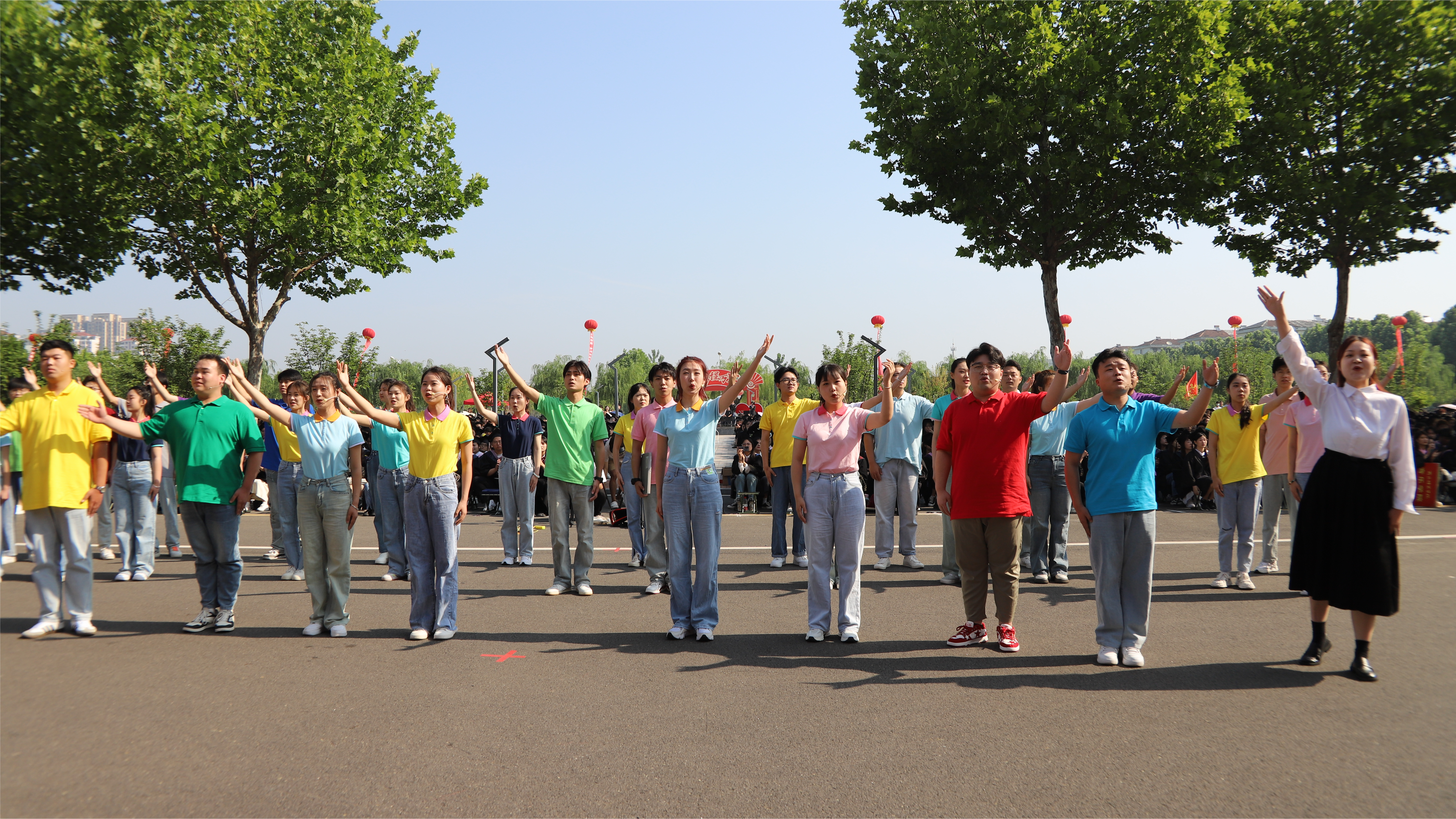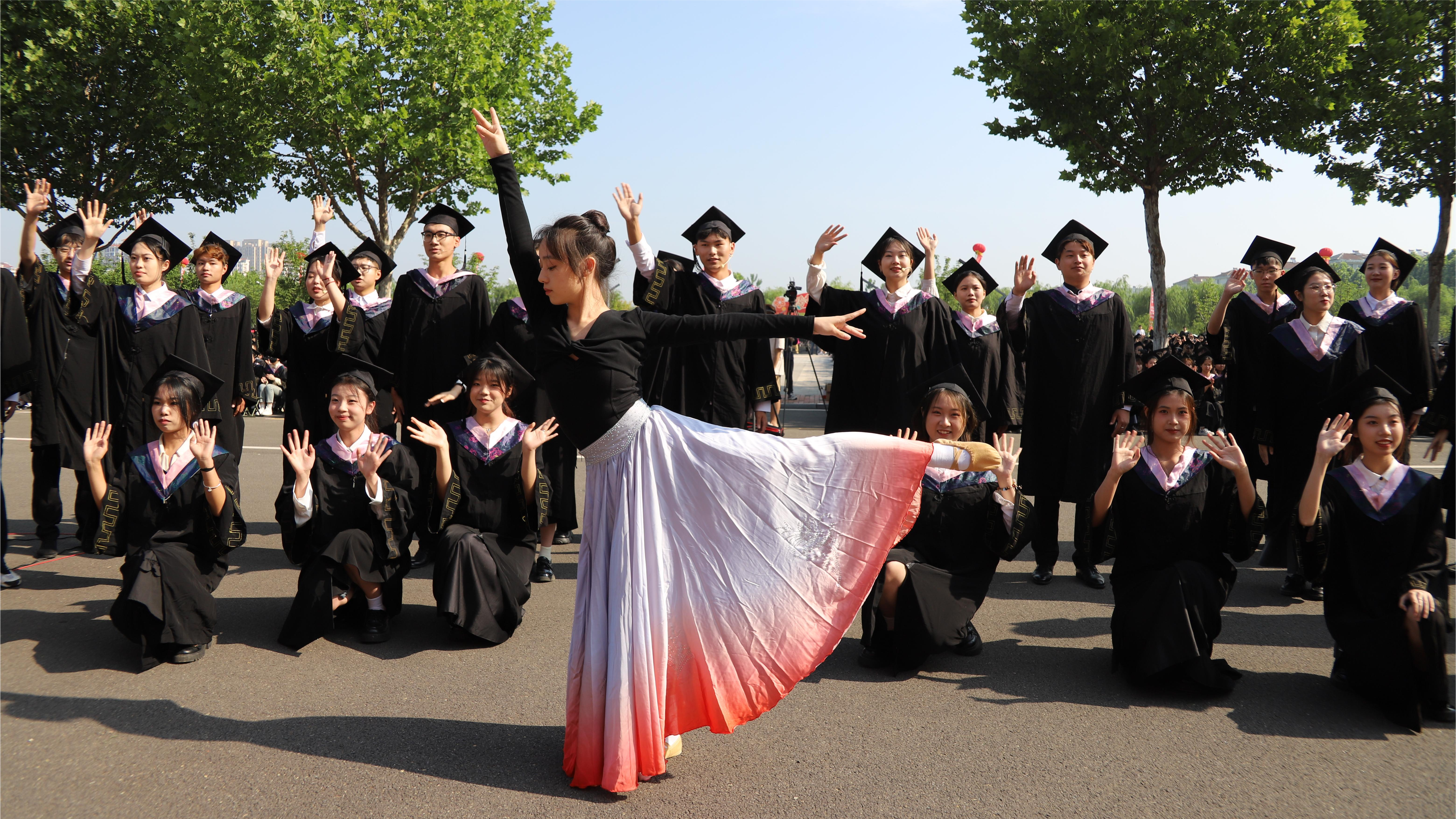 最后,全体毕业生一起朗诵、合唱校歌;观看文艺节目;师生在欢乐祥和、蓬勃向上的互动氛围中结束典礼。