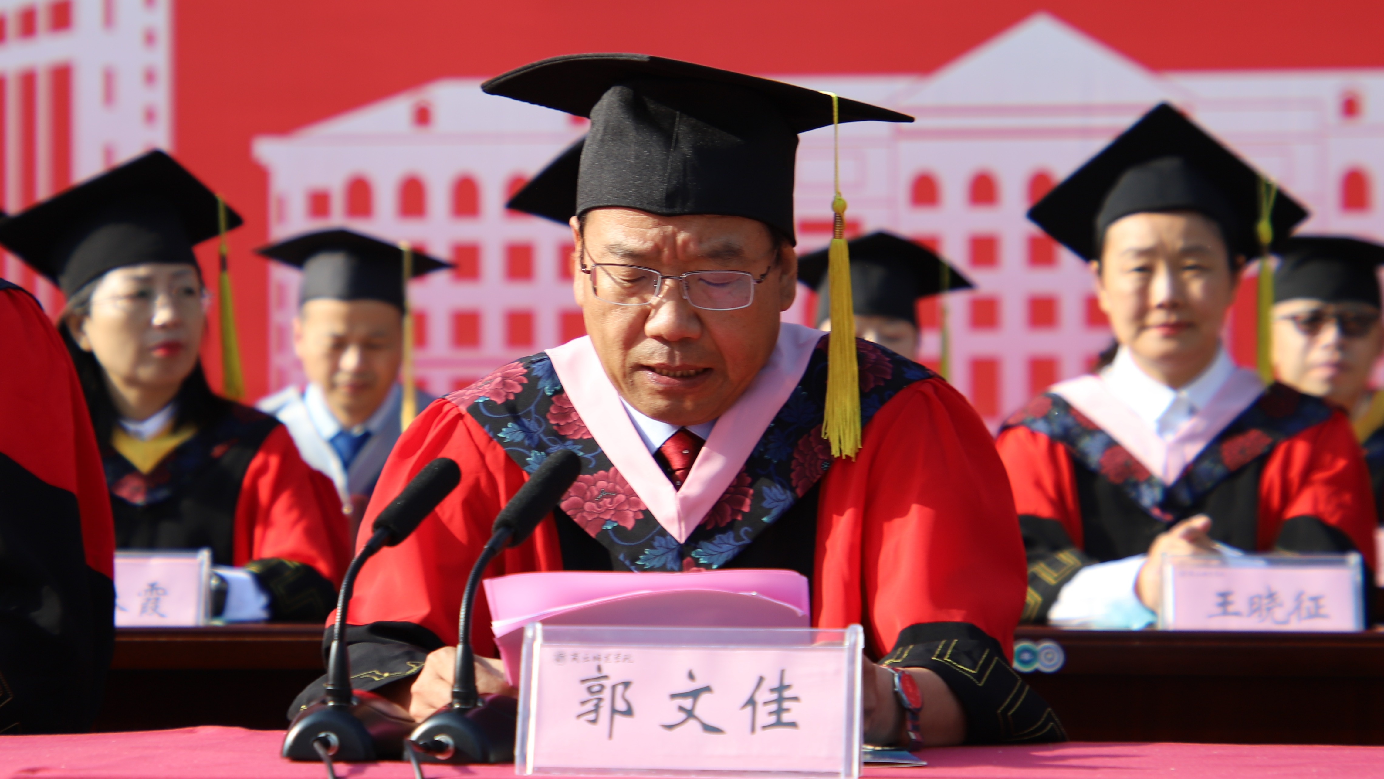 副校长郭文佳为毕业生拨穗正冠、颁发学位证书
