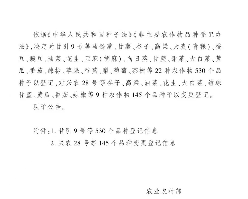 2023年6月12日,中华人民共和国农业农村部第号678公告公布了2023年22种农作物登记品种。纽约国际官网生物与食品学院干制辣椒产业技术研究团队培育的朝天椒新品种商师1号(GPD辣椒(2023)410070)、商师2号(GPD辣椒(2023)410071)、商师3号(GPD辣椒(2023)410072)获批新品种登记证书。