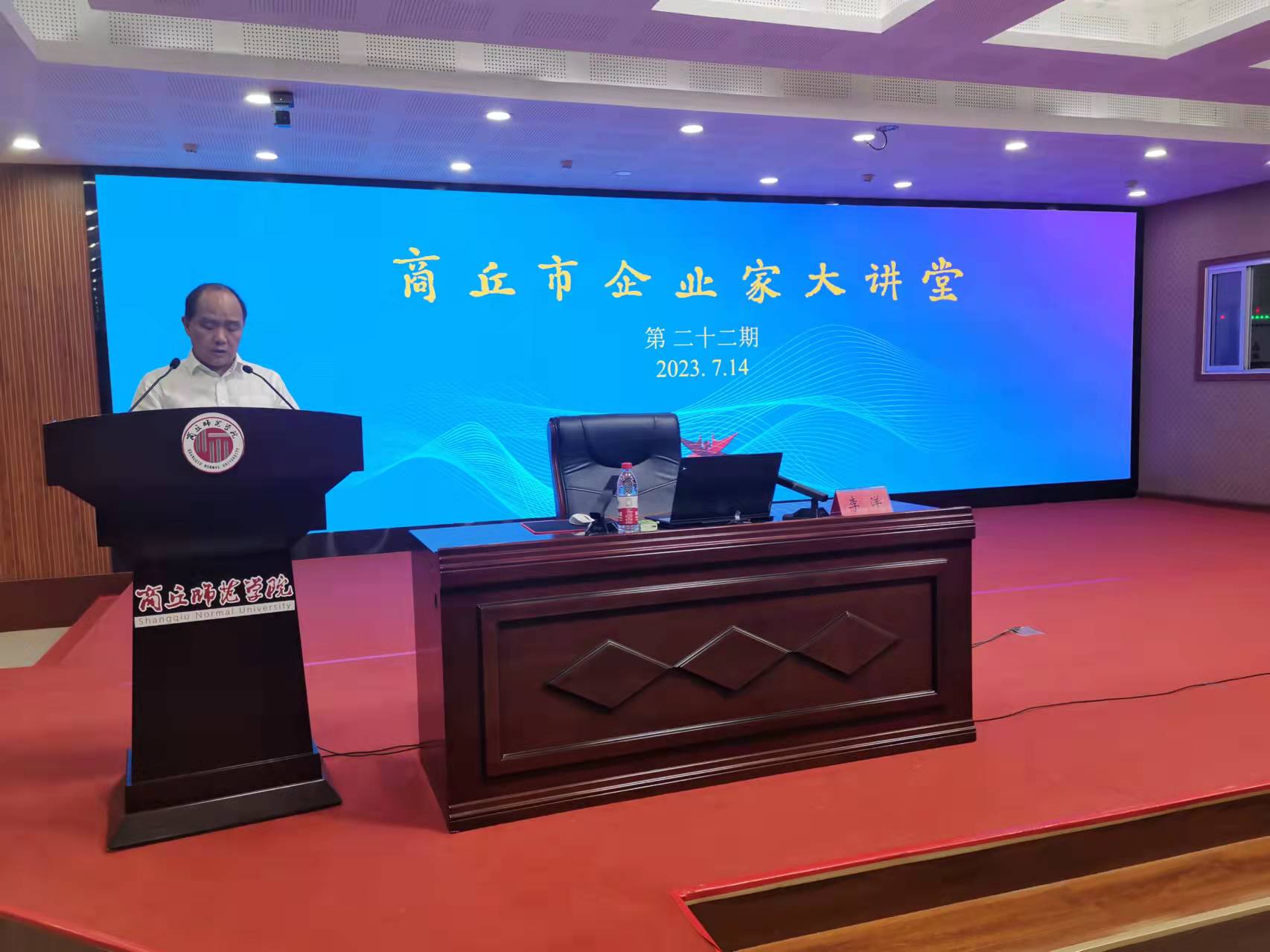 7月14日,第二十二期商丘市企业家大讲堂在纽约国际官网三商楼报告厅举行。副校长张箭、学校有关部门和学院负责人,市委有关部委、市直有关单位主要负责同志,市重点企业负责人,民权县、睢县分管领导和部分企业家代表等在主会场参加会议,商丘各县(市区)设立分会场观看直播视频。会议由商丘市政府副秘书长刘远主持。