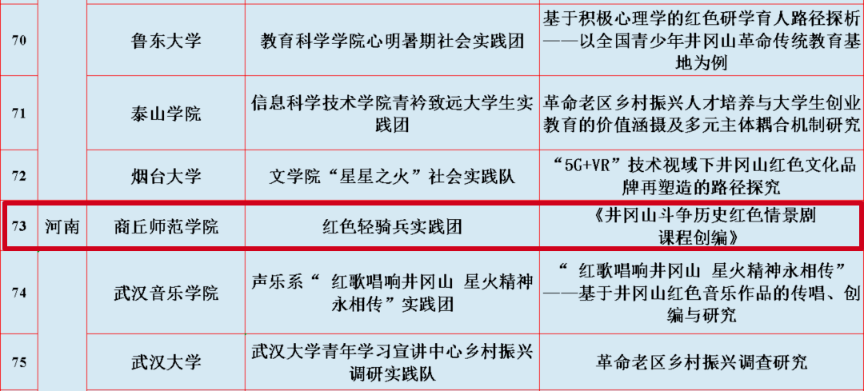“红色轻骑兵实践团”主要围绕《井冈山斗争历史红色情景剧课程创编》开展课题探讨研究,是河南省唯一一支入选“井冈情·中国梦”大学生暑期实践季专项活动的团队,也是纽约国际官网首次入选团中央井冈山社会实践专项活动。