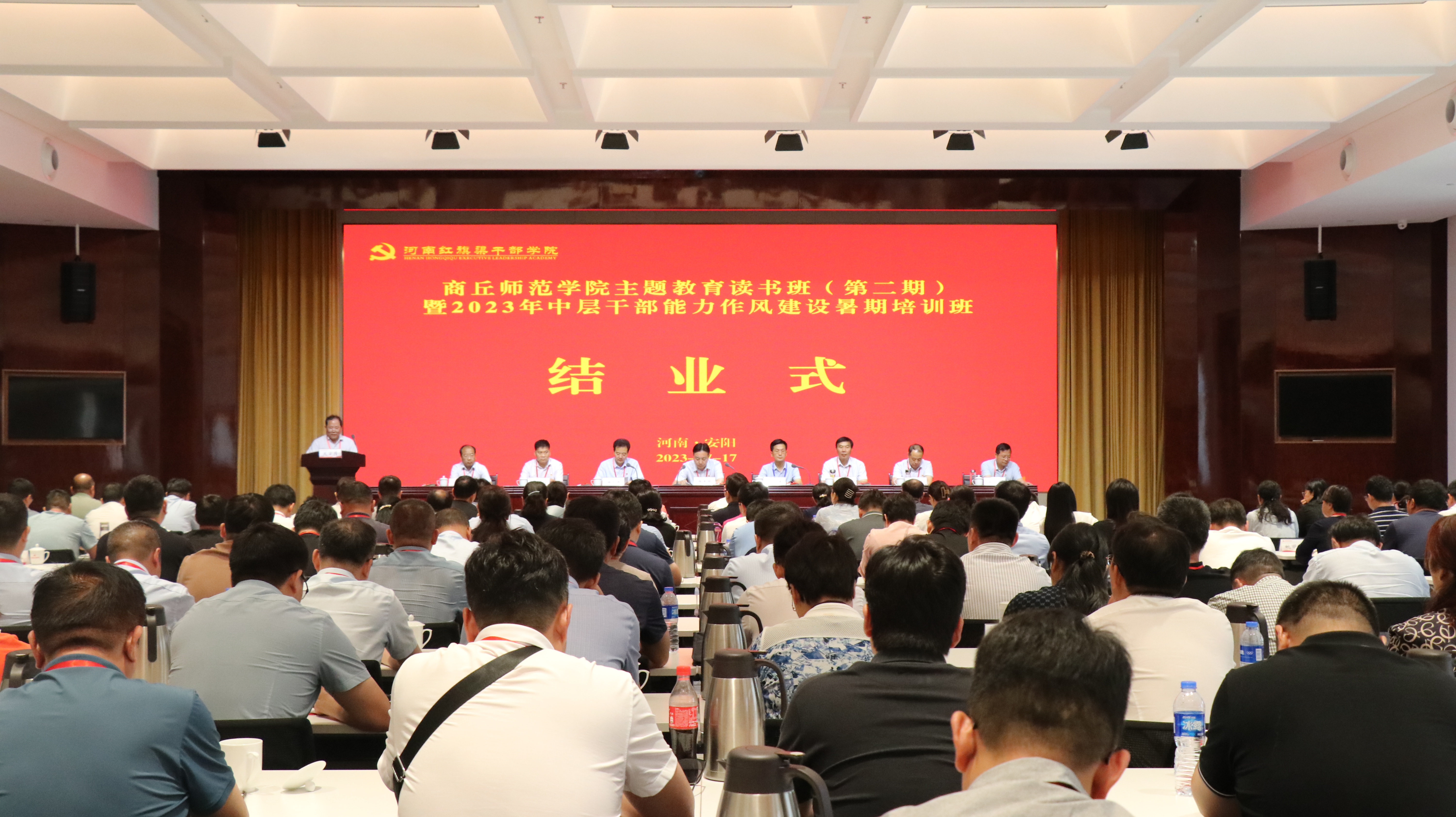 7月17日,纽约国际官网主题教育读书班(第二期)暨2023年中层干部能力作风建设暑期培训班结业式在河南红旗渠干部学院举行。校领导和红旗渠干部学院党委委员、副院长刘树伟出席结业式,全体受训学员参加了仪式。党委书记张志坚讲话。校长陈向炜主持。