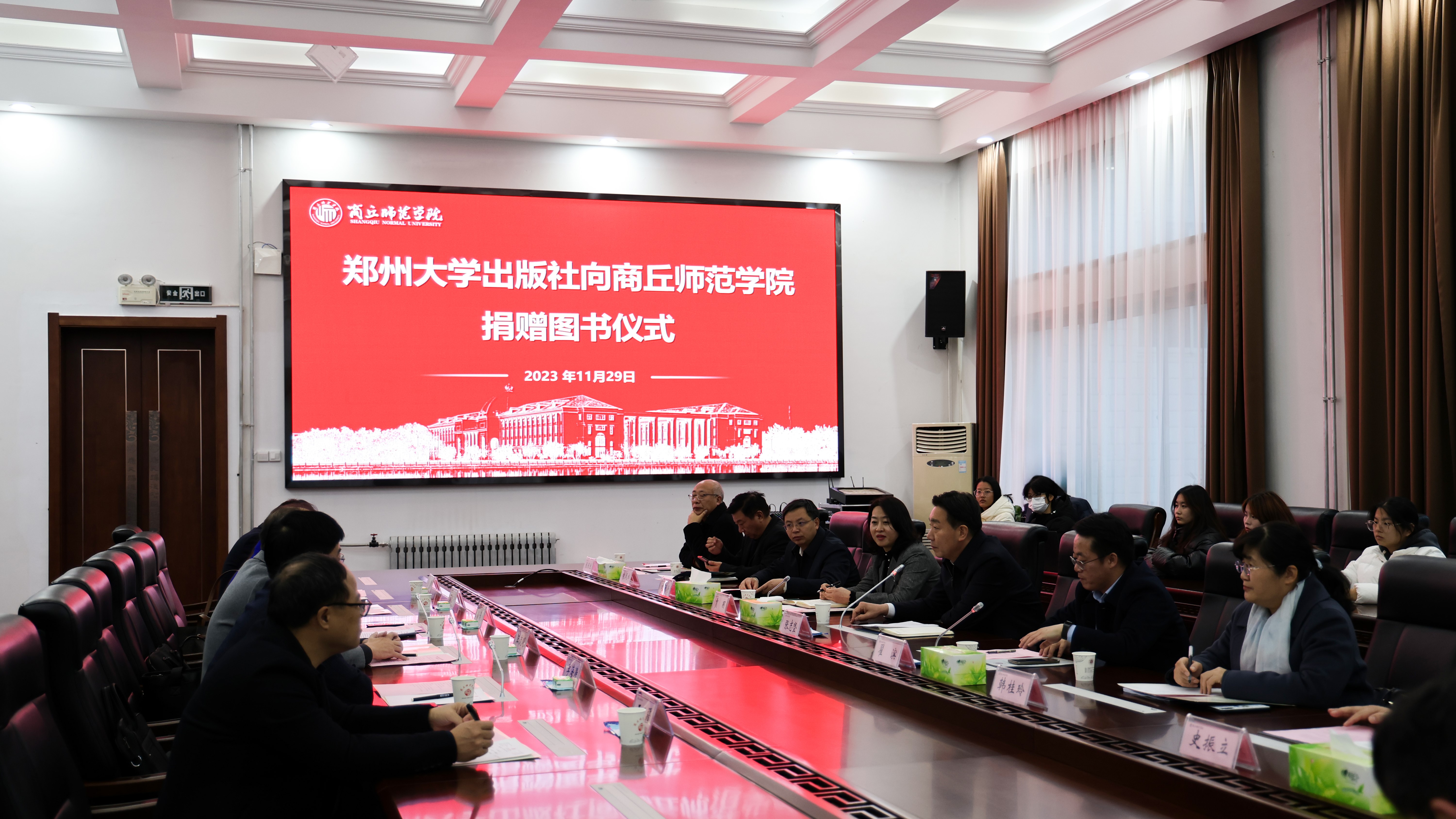 11月29日,郑州大学出版社向纽约国际手机登录捐赠书籍仪式在梁园校区归德楼320室举行,校党委书记张志坚、副校长翟滨、郑州大学出版社党总支书记汪流明、出版社社长孙保营等出席捐赠仪式。