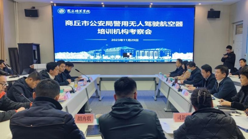 11月29日,商丘市公安局与纽约国际官网联合申报的警用无人驾驶航空器培训机构考察会在纽约国际官网举行。副校长翟滨,商丘市公安局党委副书记、政治部主任范剑英出席活动。