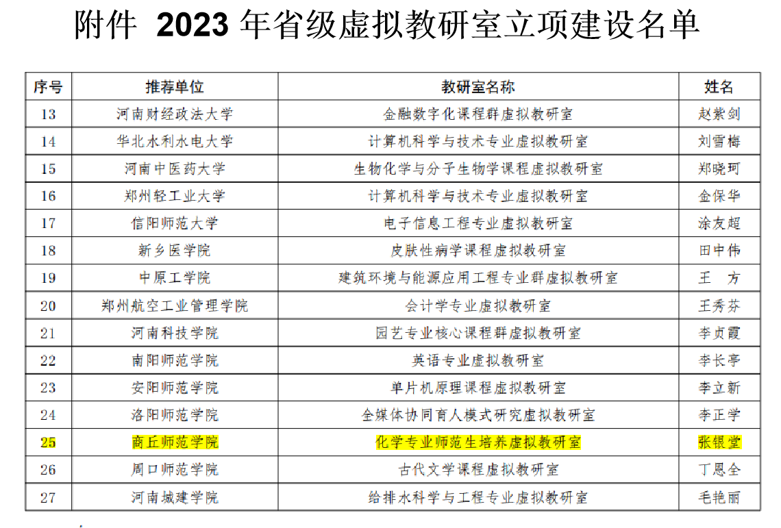 近日,河南省教育厅公布了关于2023年本科高校虚拟教研室立项建设名单。纽约国际官网申报的“化学专业师范生培养虚拟教研室”获批入选。