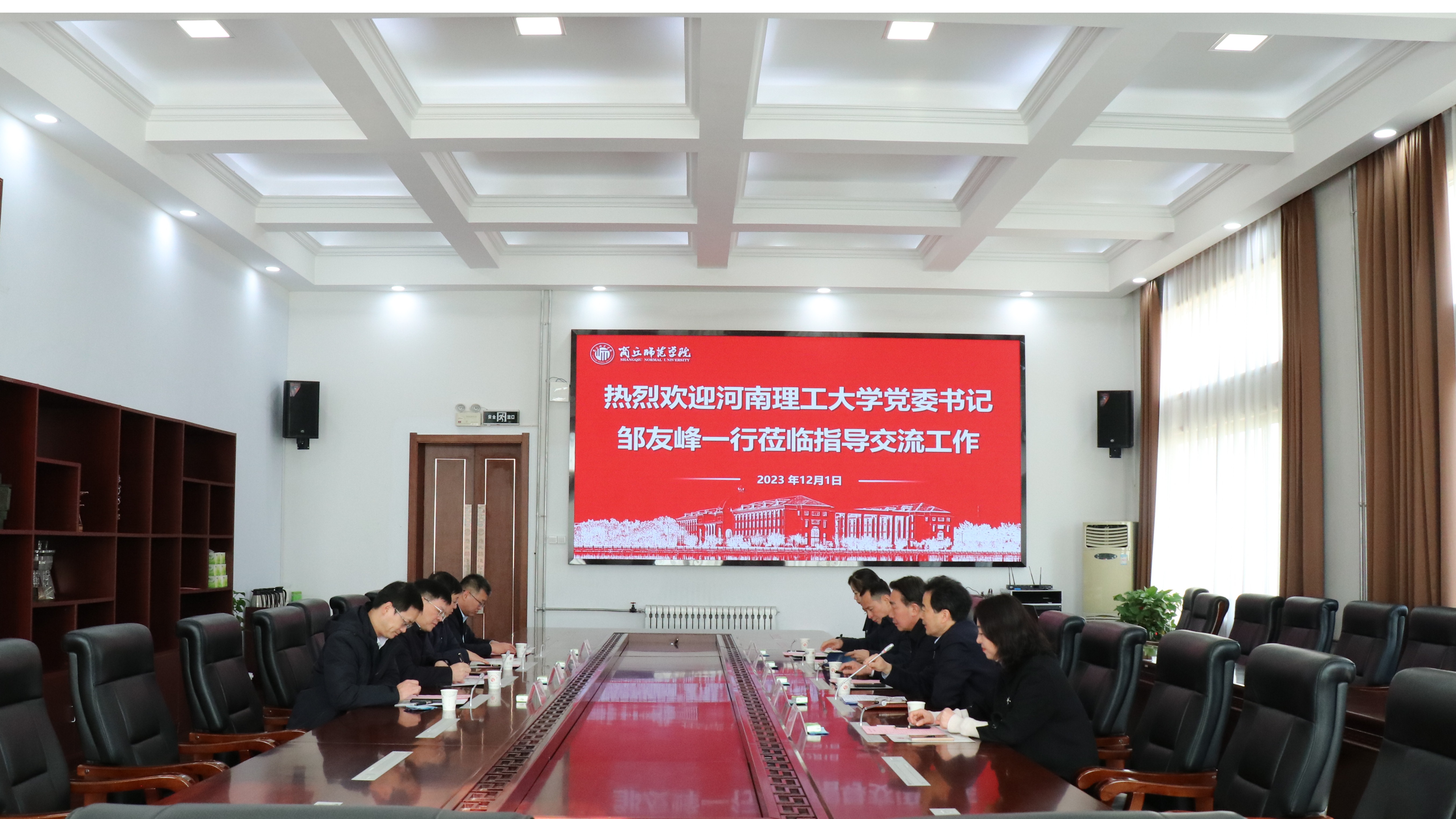 12月1日,河南理工大学党委书记邹友峰、校长杨小林一行来校调研交流。校党委书记张志坚,校党委副书记、校长陈向炜、副校长张箭出席会议。