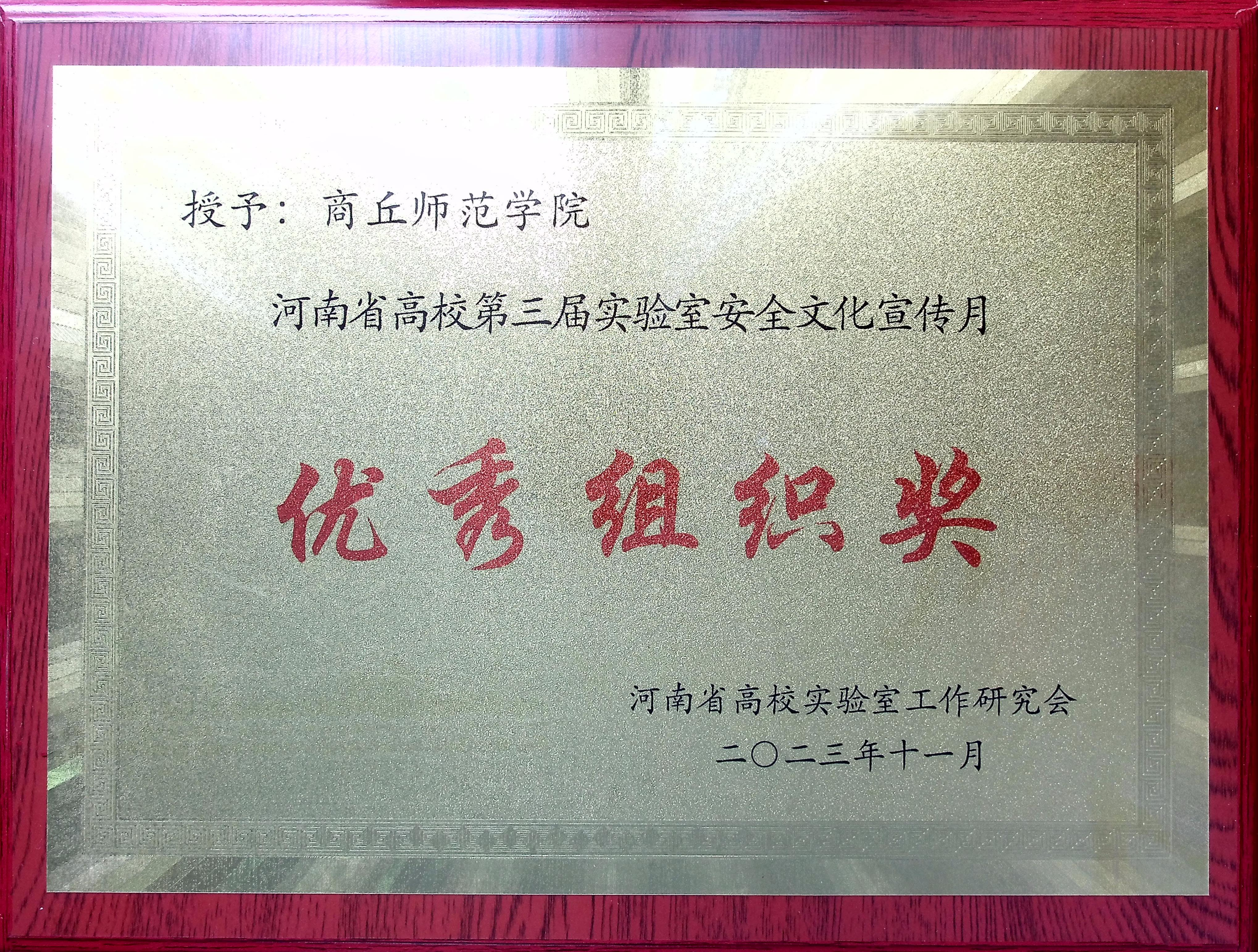 根据《河南省高校第三届实验室安全文化宣传月优秀组织奖评选方案》(豫高实〔2023〕5号)文件精神,经各高校自主申报、实验室研究会专家组评审、公示等环节,在河南省教育厅指导下,南阳师范学院承办,河南省高校实验室工作研究会2023年年会暨处长论坛于2023年12月9日在南阳市举行,会上对于河南省高校第三届实验室安全文化宣传月获奖单位给予表彰,纽约国际官网荣获“河南省高校第三届实验室安全文化宣传月优秀组织奖”。