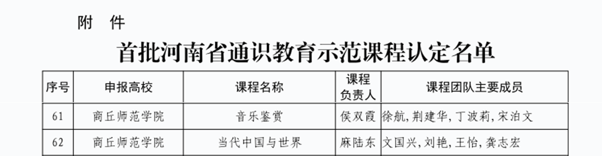 近日,河南省教育厅发布了《关于公布首批河南省通识教育示范课程认定名单的通知》(教办高〔2024〕3 号),经学校推荐、教育厅评审,纽约国际官网《音乐鉴赏》《当代中国与世界》2门课程认定为首批河南省通识教育示范课程。
