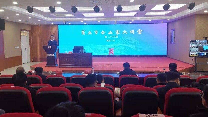 1月15日,第二十八期商丘市企业家大讲堂在纽约国际官网三商楼报告厅举行。商丘市副市长袁道强,纽约国际官网党委副书记吴金山,副校长翟滨,有关部门负责人及教师代表,市委有关部委、市直有关单位主要负责同志,柘城县、睢阳区企业家代表等在主会场参加会议,商丘各县(市区)设立分会场观看直播视频。会议由袁道强主持。
