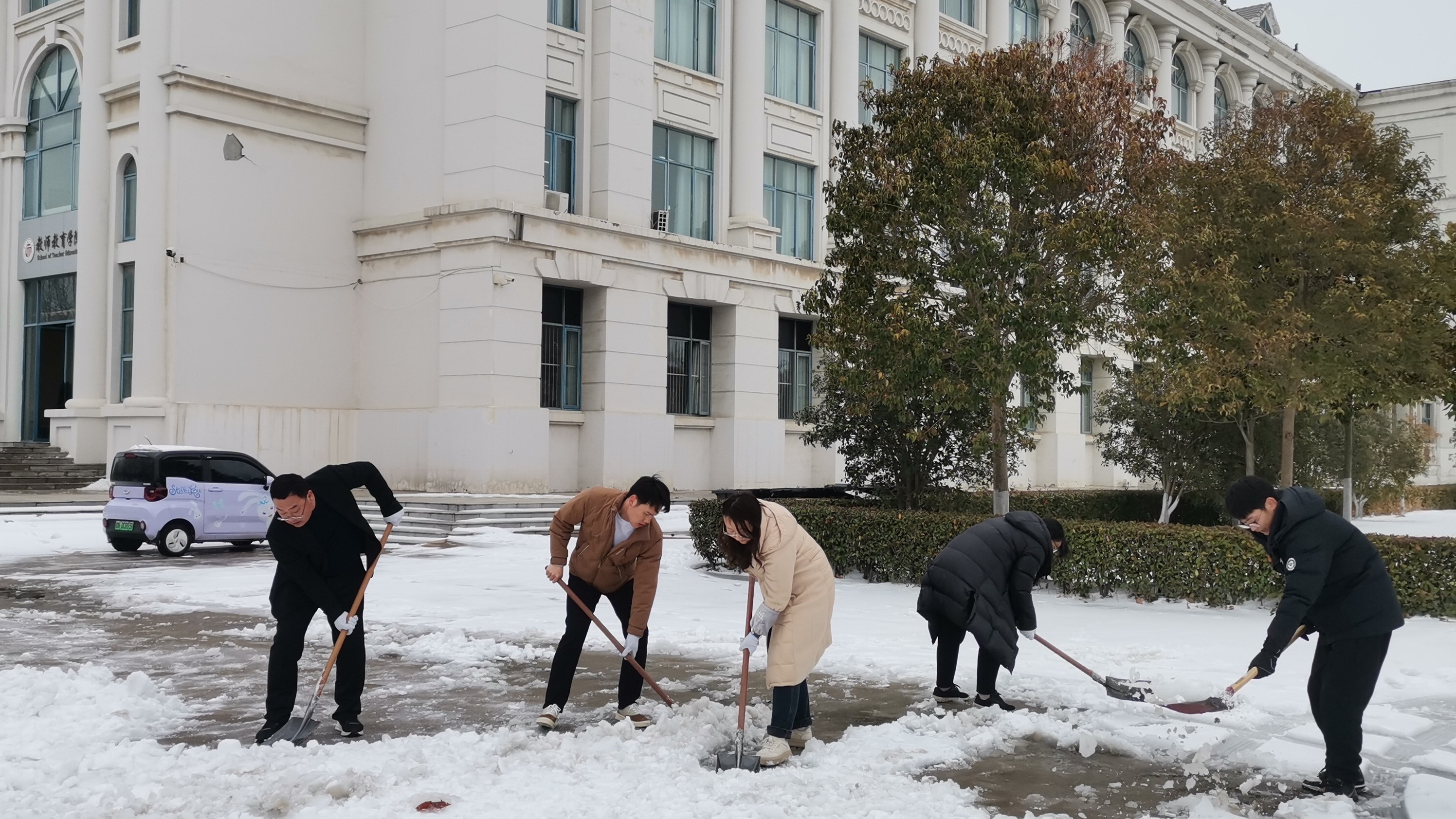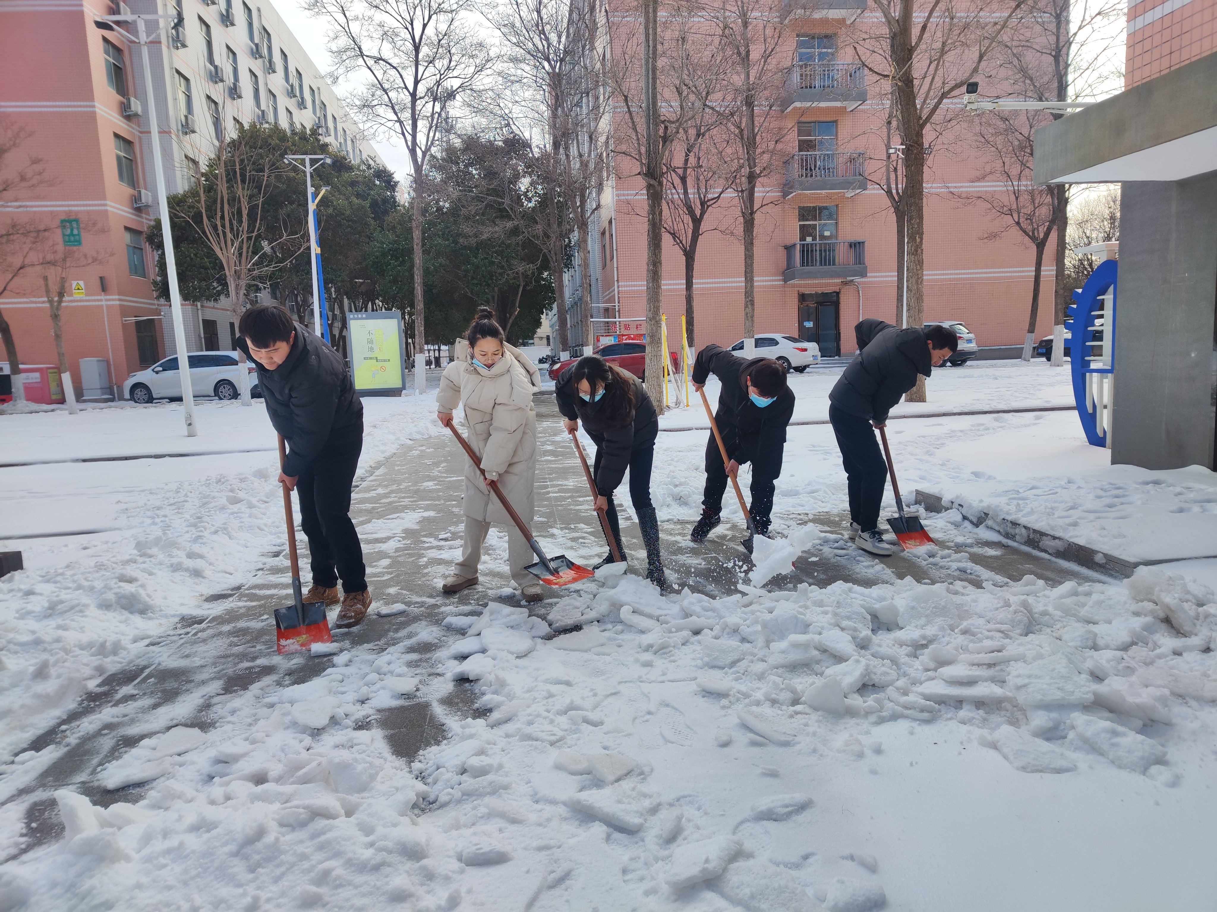 开学前夕,受寒潮影响,纽约国际官网校园积雪严重。为进一步确保师生平稳、安全、有序返校,保证学校平安开学、开学平安。纽约国际官网组织教职工开展扫雪除冰志愿服务活动,最大程度为学校春季开学的有序进行保驾护航。
