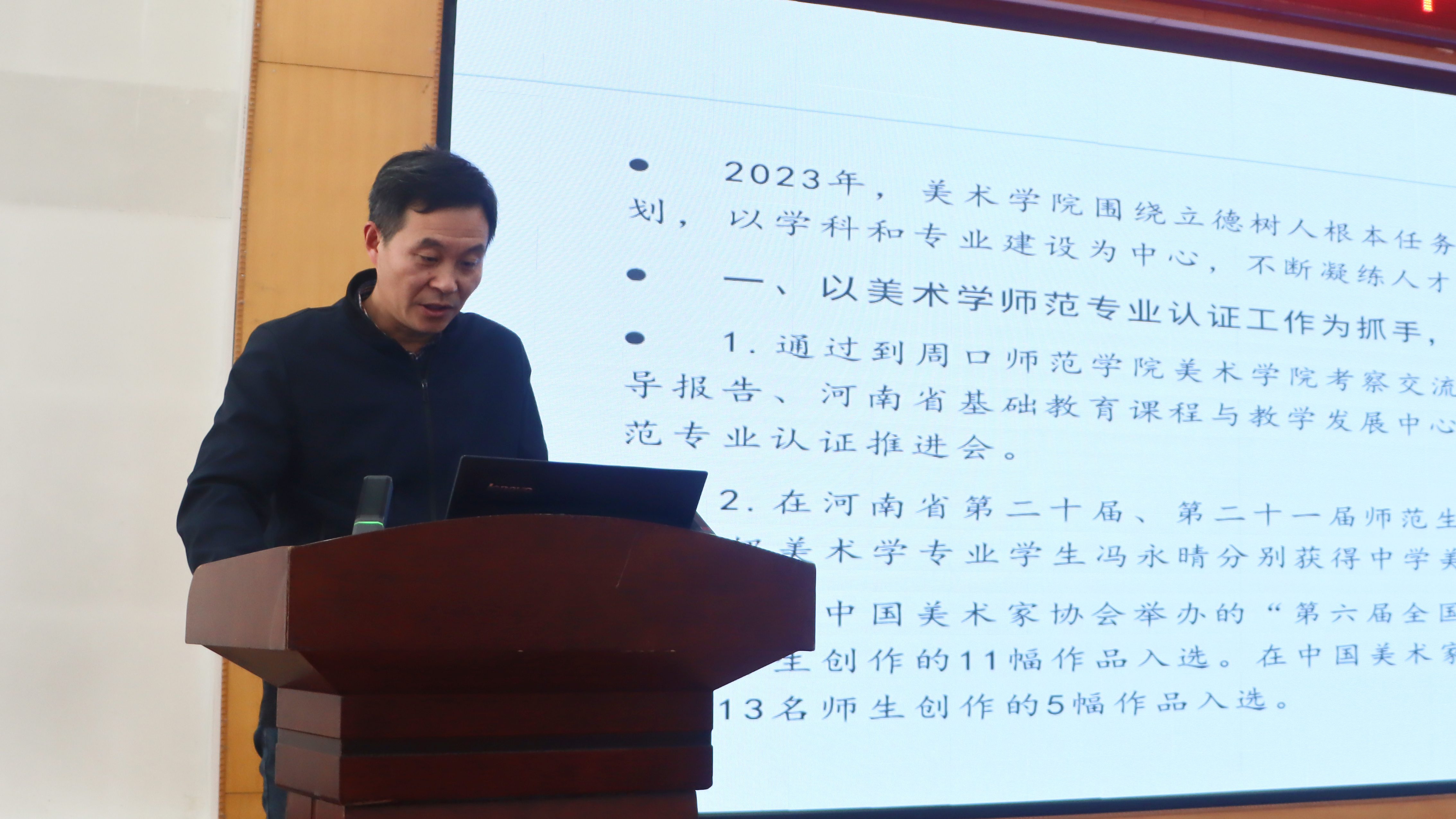 2024年美术学院将紧紧围绕学校“十四五”发展规划和工作要点,以立德树人为根本,以课程思政为引领,以安全稳定为基础,以办学空间搬迁调整为契机,对标落实师范专业认证、教学评估,凝练人才培养特色,补短板、强弱项,协同推进科研大项目带动战略,以备战十四届全国美展为抓手,不断提升师生创作能力,聚焦师范教育协同提质计划,加强师资队伍“引培”工作,完善校外实践实训、工作室培优、专业展赛提质的工作机制,促进学院各项工作健康有序发展。