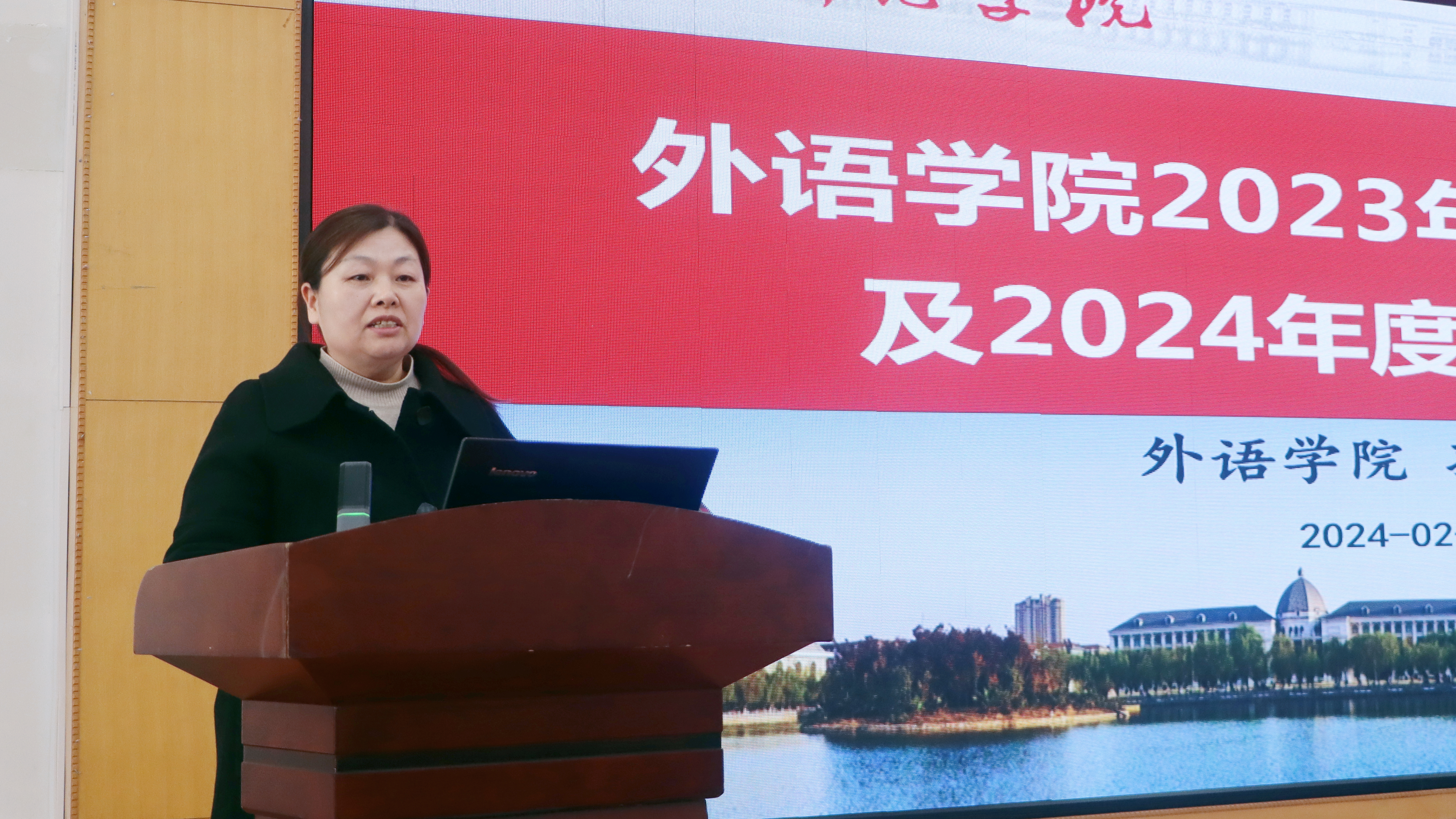 2023年,外语学院各项工作均取得优异成绩。教师获省级、校级荣誉称号15人,在国家级、省级等各级教学大赛中获奖20余人次,获国家级奖励3项,省特等奖1项;学生工作取得突破,获批省质量工程“河南省高校辅导员工作室”;学工与教师队伍同频共振,人才培养质量不断提升,获省级以上学科竞赛奖励147人次,其中获国家级铜奖2项,省级特等奖2项;考研录取人数首次突破50人大关;科研工作取得突破,实现国家社科项目零的突破,首次荣获国家级、教育部和省级项目立项大满贯。2024年,外语学院将持续坚持党建引领,坚持立德树人,全面落实学校和学院“十四五”发展规划,加大高层次人才引进力度,提升教师整体素质;以学科和专业建设为中心,积极推进本科审核评估和本科专业煅强提质工作,不断加强翻译学省级重点学科申报、MTI授权点申报推进工作,依托协同提质计划和相关优质资源,推动英语专业向申硕方向发展,推动商务英语专业向国际合作办学方向发展;进一步深化课程教学改革,力争获批高层次教改项目立项;持续加强课程与课程思政建设,打造课程思政教学团队,力争获批高层次课程建设项目立项,依托互联网+师范生技能培养工作坊,进一步提升师范生培养质量。大力加强学风建设,持续加强大创工作,组织学生参与各类学科竞赛,在国家级奖励方面再创佳绩;持续做强科研与社会服务工作,拓展国家级项目申报方式,加大申报力度,力争获批省部级以上项目立项,打造“殷商之源文化外译传播研究中心”科研平台,加强横向合作,持续利用学科优势服务地方经济、文化发展。