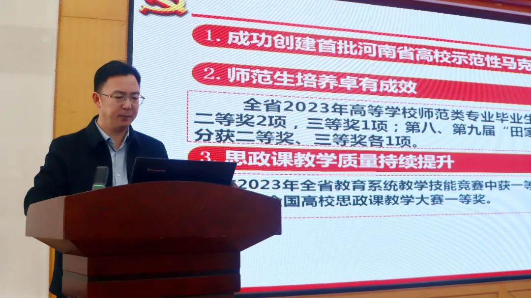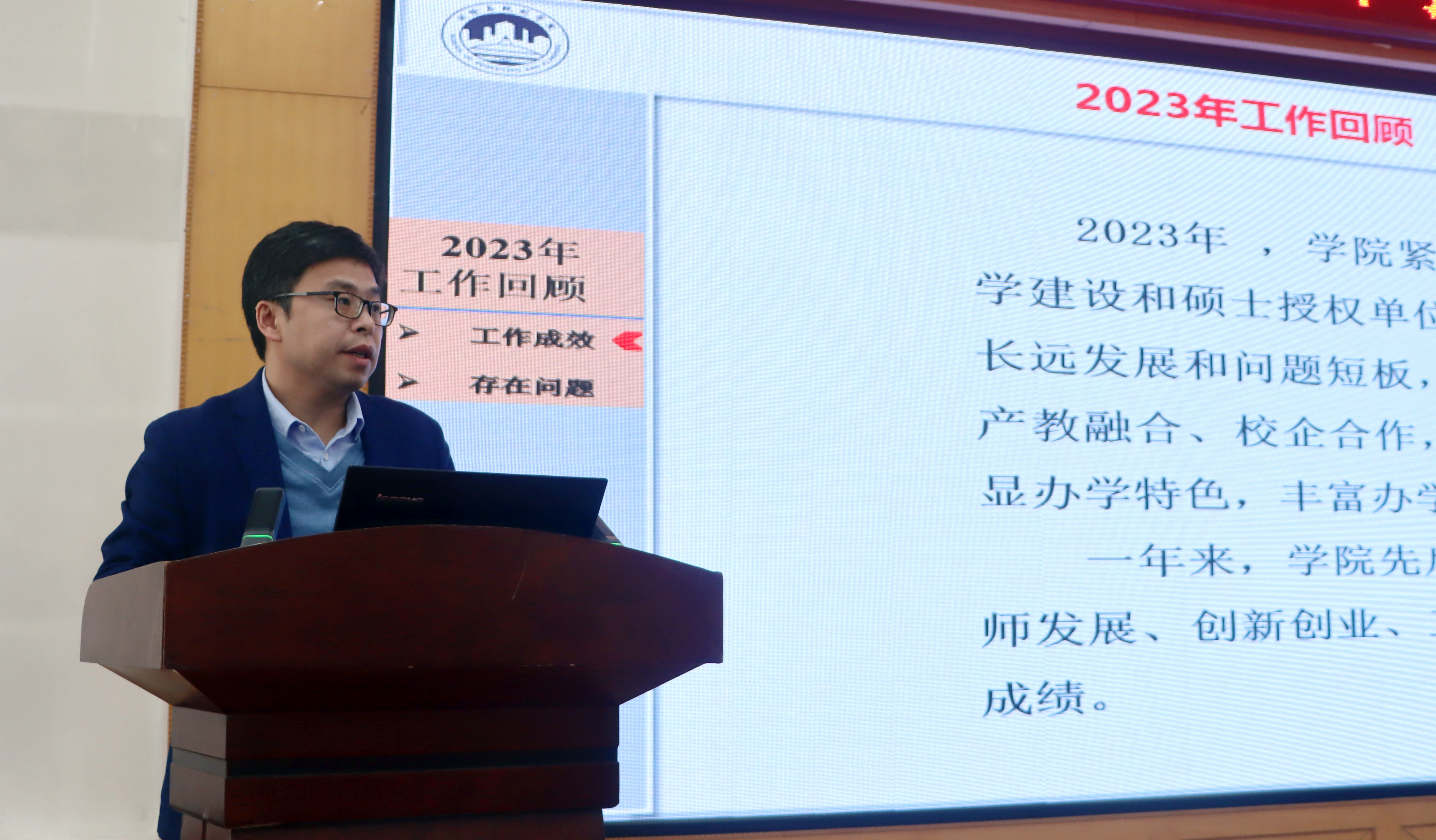 2023年,学院紧密围绕学校工作要点和学院工作计划,较好地完成了年度目标任务。在学科建设方面,学院获批国家自然科学基金青年项目1项、省厅级科研项目12项,获批了三项农业农村部辣椒新品种登记证书,科研总经费712万元。在专业建设上,获批省研究性教学示范课程1项,省产教融合重点课程1项,获河南省特色行业学院1个,省级一级重点学科1个,省黄大年式教师团队1个。在学生培养上,考研录取率为36%,位列全校第二名。新增联合培养研究生6人。第二部分是工作存在的不足。科研方向与申硕需求契合度不高,科技成果转化能力偏弱。高层次人才和成果偏少,对外缺乏足够的影响力。三是2024年工作思路,以营造良好学风教风为中心,以生物与医药硕士点申报和教学质量提升工作为主线,做好高水平人才引领、标志性成果打造、特色化团队建设三项工作。教学上,打造“一专业一特色,一师一精品课”。科研上,实施“高水平人才引领,标志性成果带动”。第四部分为2024年工作实施方案。通过多项措施打造良好学风师风,如修订学院教学管理办法、实施绩效分类评价、双导师制、打造“一师一精品课”等。围绕生物与医药硕士授权点,做好高层次人才引进工作。扎实做好标志性成果的培育。围绕抗病与育种方向培育省级科技成果奖,围绕课程思政与产教融合方向培育省级教学成果奖。以申硕需求为导向打造特色科研团队。依据申硕需求凝练科研方向,打造特色化科研团队,目前已形成了作物育种与作物抗病等三个科研团队。做好科技成果转化工作。围绕辣椒、功能菌剂等优势成果与企业对接,力争实现成果转化的新的突破。