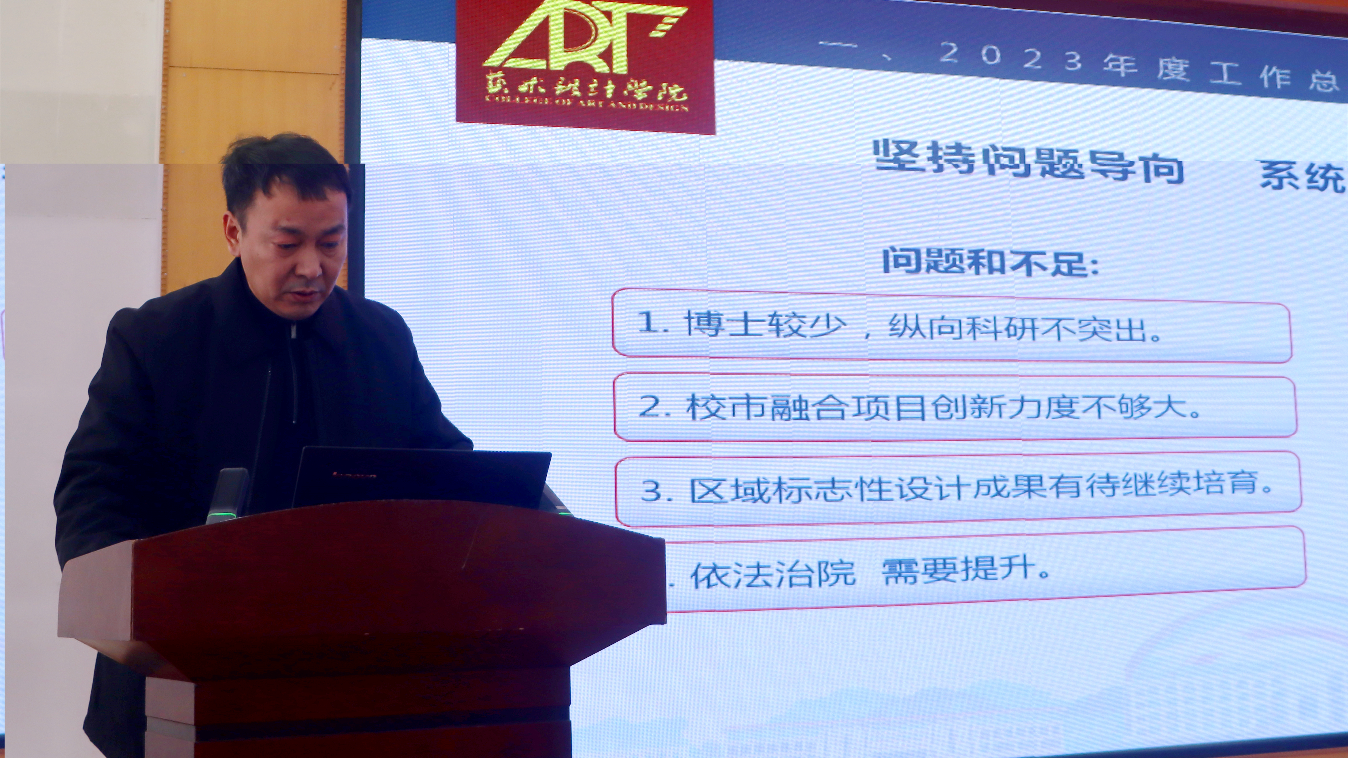 全面学习贯彻落实党的二十大精神,发挥党政联席会、学术委员会的统筹引领作用,以审核评估为契机,逐步完善以绩效工资改革为抓手,高校四大功能协同发展的内部治理体系。一是“以评促建”对标对表加强日常管理工作,提升档案建设水平。聚焦“新工科、新文科”建设,发挥交叉学科优势,深化产教融合、协同育人,推动人才培养方案改革,制定“设计教育、数字媒体”微专业建设方案,完善学科发展体系。二是加强和省内外高校的交流,通过教师互访、课程互鉴、科研互通、学生互动等方式探索区域高校的专业协同机制,持续优化“三立三服、服务社会”的科研创新体系,坚持“全体参与、分类引导”,培育各级各类项目。三是深化校市融合提升服务能力,立足专业建设助力区域乡村振兴、文旅文创融合等发展。积极谋划艺术中心空间布局,确保顺利搬迁。四是以非遗大师工作室建设为抓手传承优秀传统文化,谋划校政企三元协同的“设计+”产教融合研讨会和2024届毕业展览及就业推介会。