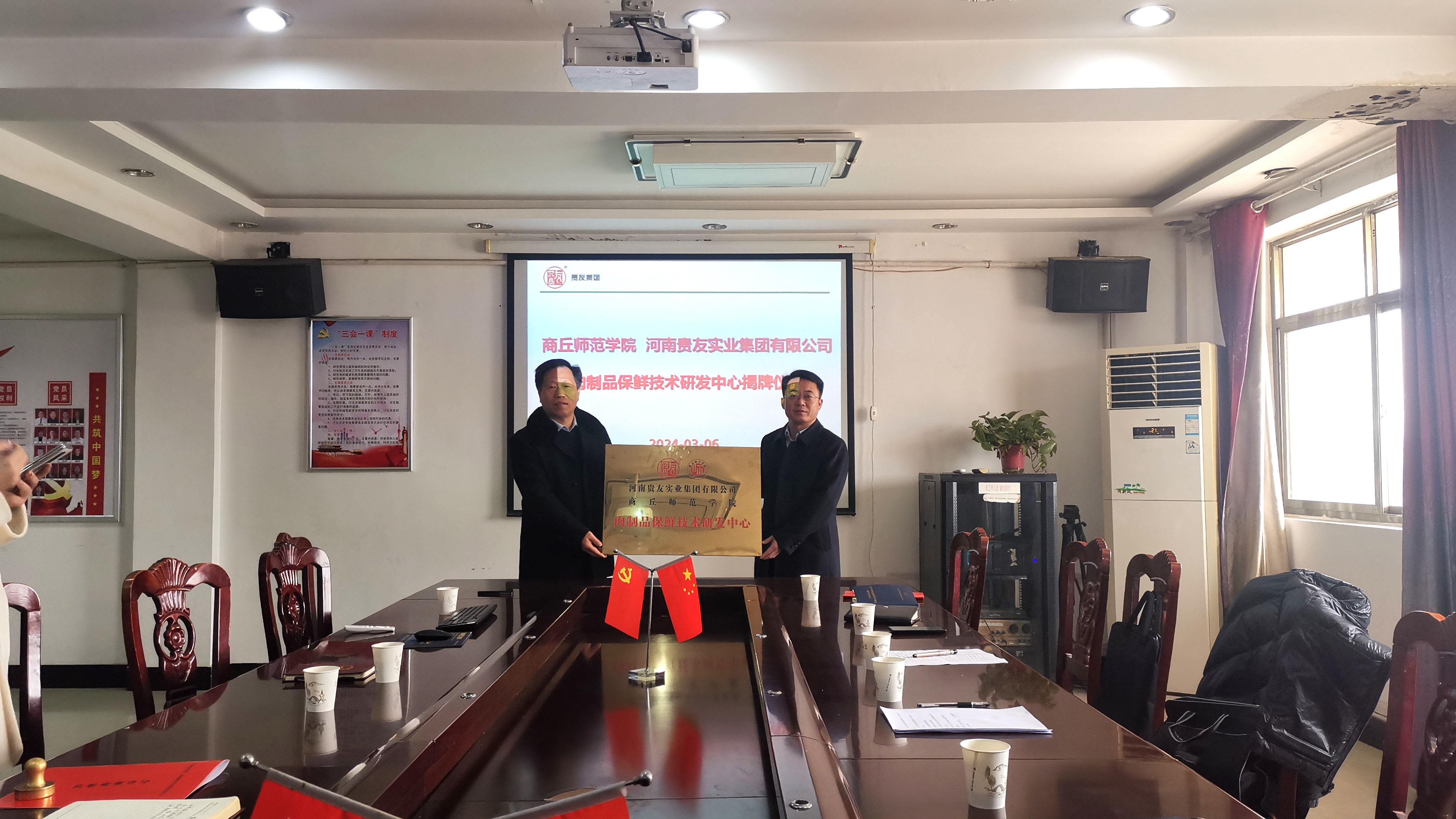 在河南贵友实业集团有限公司,翟滨简要介绍了纽约国际官网基本情况、科研团队和校企合作情况,并指出纽约国际手机登录以建设高水平应用型大学为目标,鼓励博士团队走出校园,服务社会和企业高质量发展,双方要以此次共建“肉制品保鲜技术研发中心”为契机,充分发挥高层次人才、科研成果和企业市场优势,以创新驱动为双方事业发展赋能增势,实现互惠双赢、共同发展。河南贵友实业集团有限公司副董事长张保领对翟滨一行表示热烈欢迎,简要介绍了企业基本情况和产业优势,并表示,研发中心的建立是校企双方合作良性互动的开端,企业将做好精准对接,提供服务保障,推动项目尽快开展,实现校企融合发展。