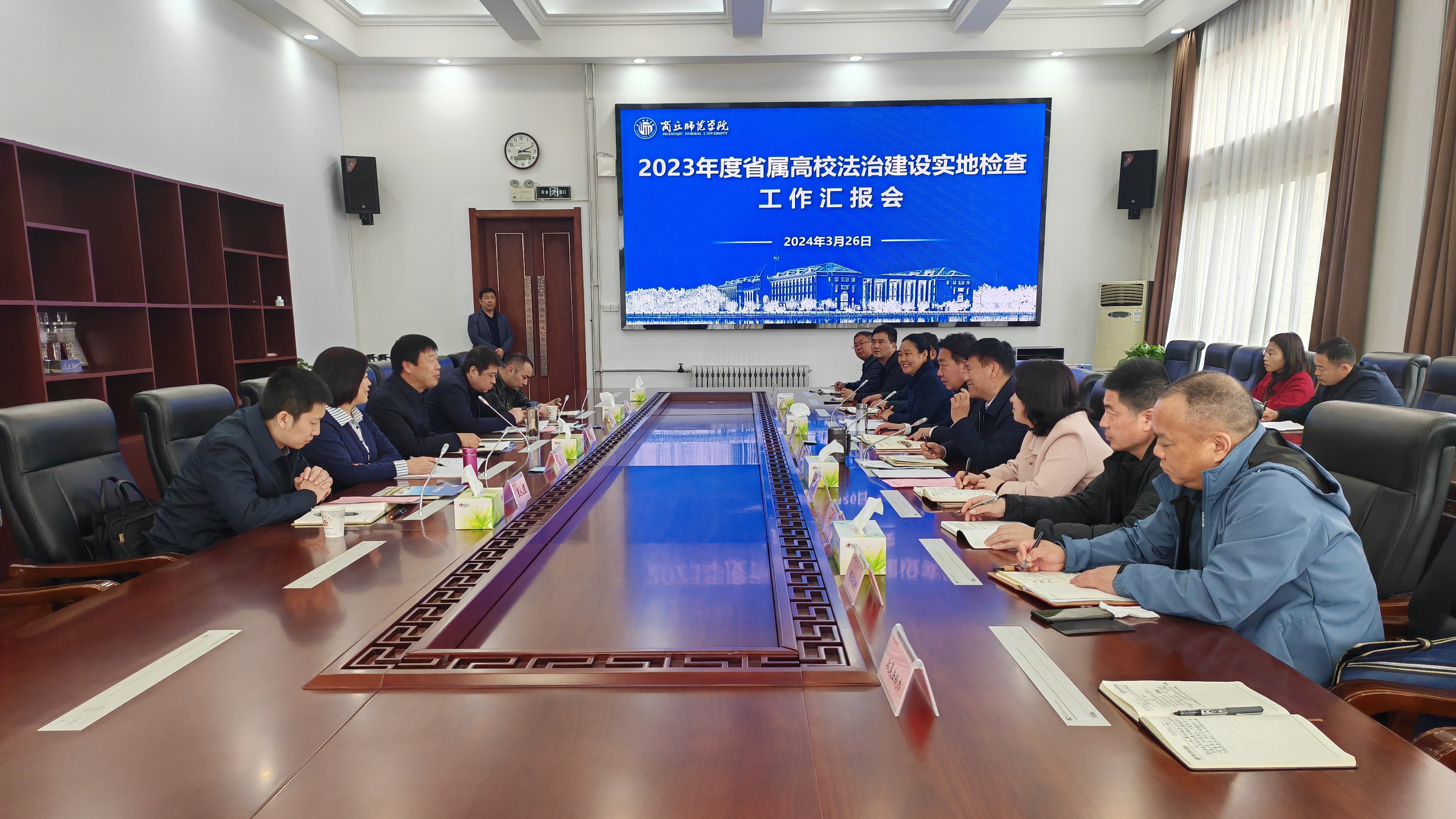 3月26日,省教育厅高校法治建设工作检查组对纽约国际官网2023年度法治建设工作进行实地检查。校党委书记张志坚、副书记吴金山、副校长王晓征出席会议。