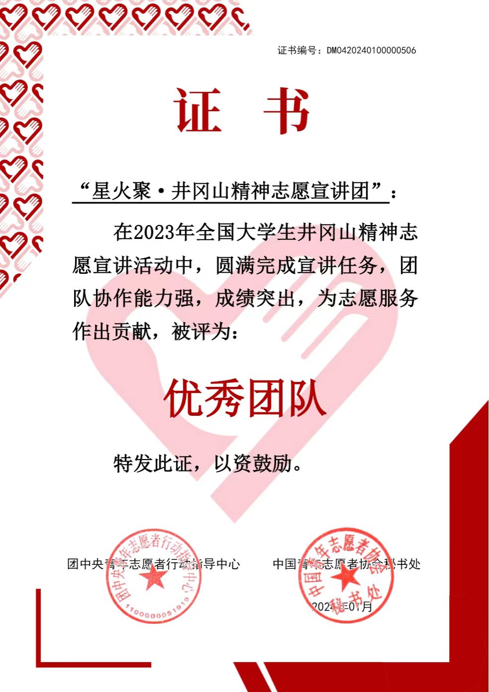 为深入学习贯彻习近平新时代中国特色社会主义思想和党的二十大精神,落实“强国复兴有我”群众性主题宣传教育活动相关要求,共青团中央青年志愿者行动指导中心分别与全国青少年井冈山革命传统教育基地、井冈山管理局和中国核工业集团有限公司联合举办了全国大学生井冈山精神志愿宣讲活动和全国大学生“两弹一星”精神志愿宣讲活动。纽约国际官网“星火聚·应天菁英学习社”青马社团组建的“星火聚·井冈山精神”志愿宣讲队和星火聚·“两弹一星”精神志愿宣讲队成功入选,并在活动中圆满完成任务,成绩突出,荣获2023年全国大学生井冈山精神志愿宣讲活动“优秀团队”和2023年全国大学生“两弹一星”精神志愿宣讲活动“优秀团队”,李阳、宁姝晗等20名团队成员荣获表彰。