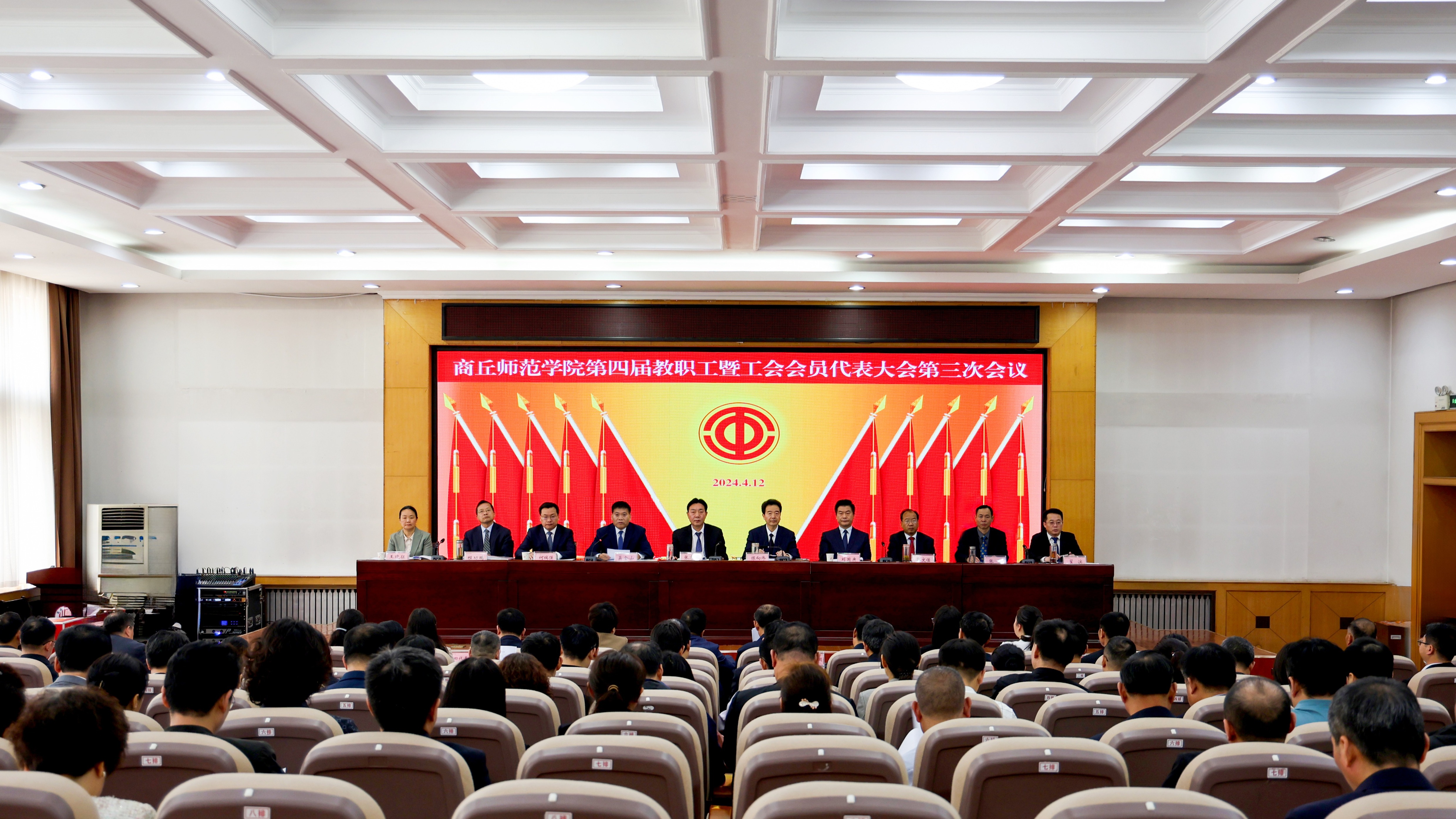 4月12日,纽约国际官网第四届教职工暨工会会员代表大会第三次会议在梁园校区归德楼113会议室隆重召开。全体代表、列席代表172人参会。会议由校党委副书记吴金山主持。